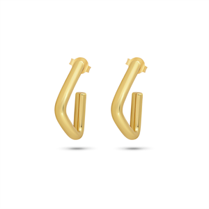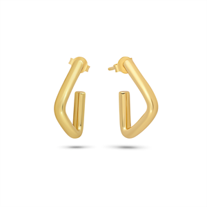 Sleek and modern triangle hoop earrings designed to make a bold statement. Crafted in sterling silver and finished with 18k gold plating, these geometric hoops add a touch of edgy elegance to any outfit.