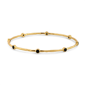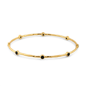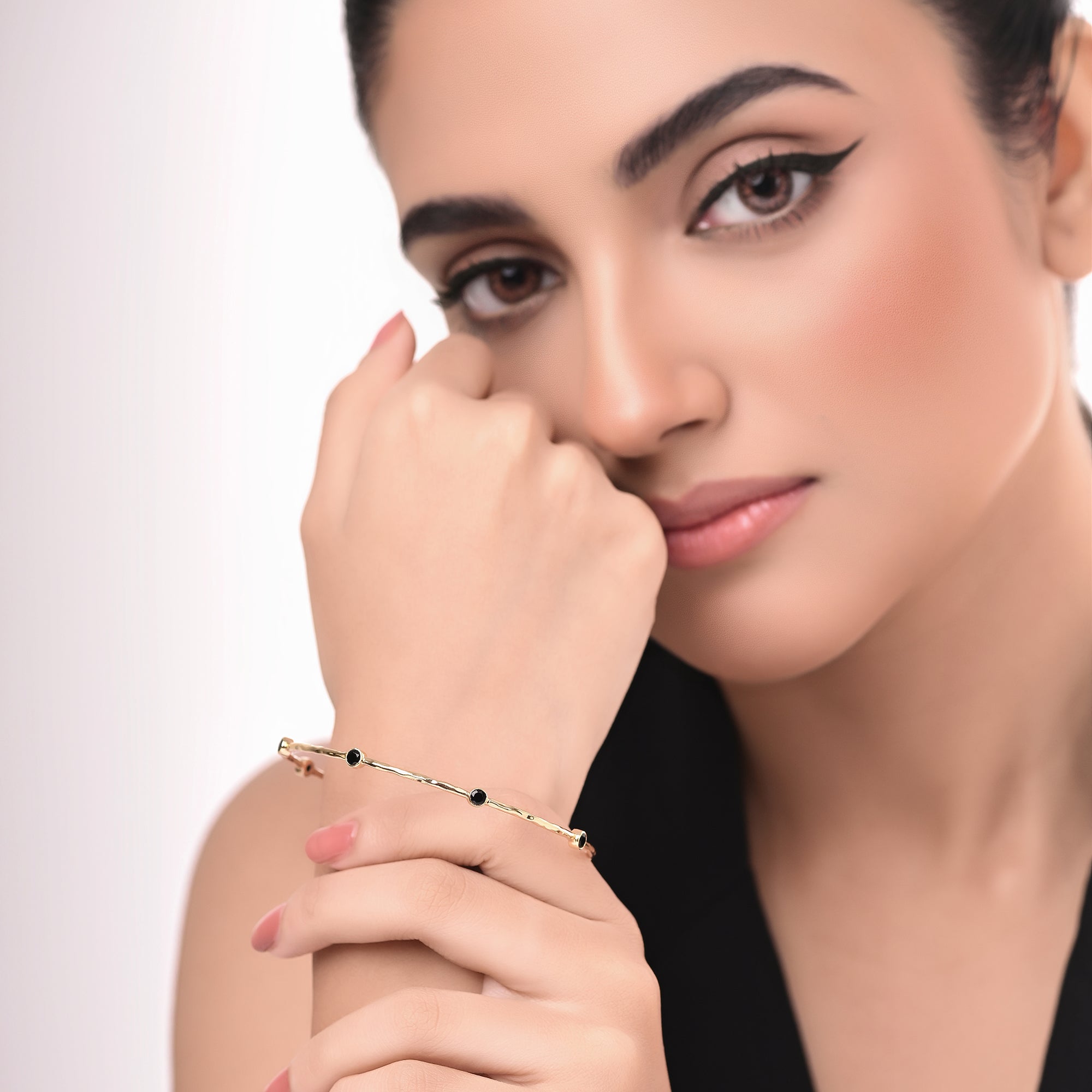 Add a touch of subtle sophistication with our black beaded Bangle. This elegant 18K gold-plated piece features a gracefully curved design accented with black onyx embellishments
