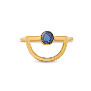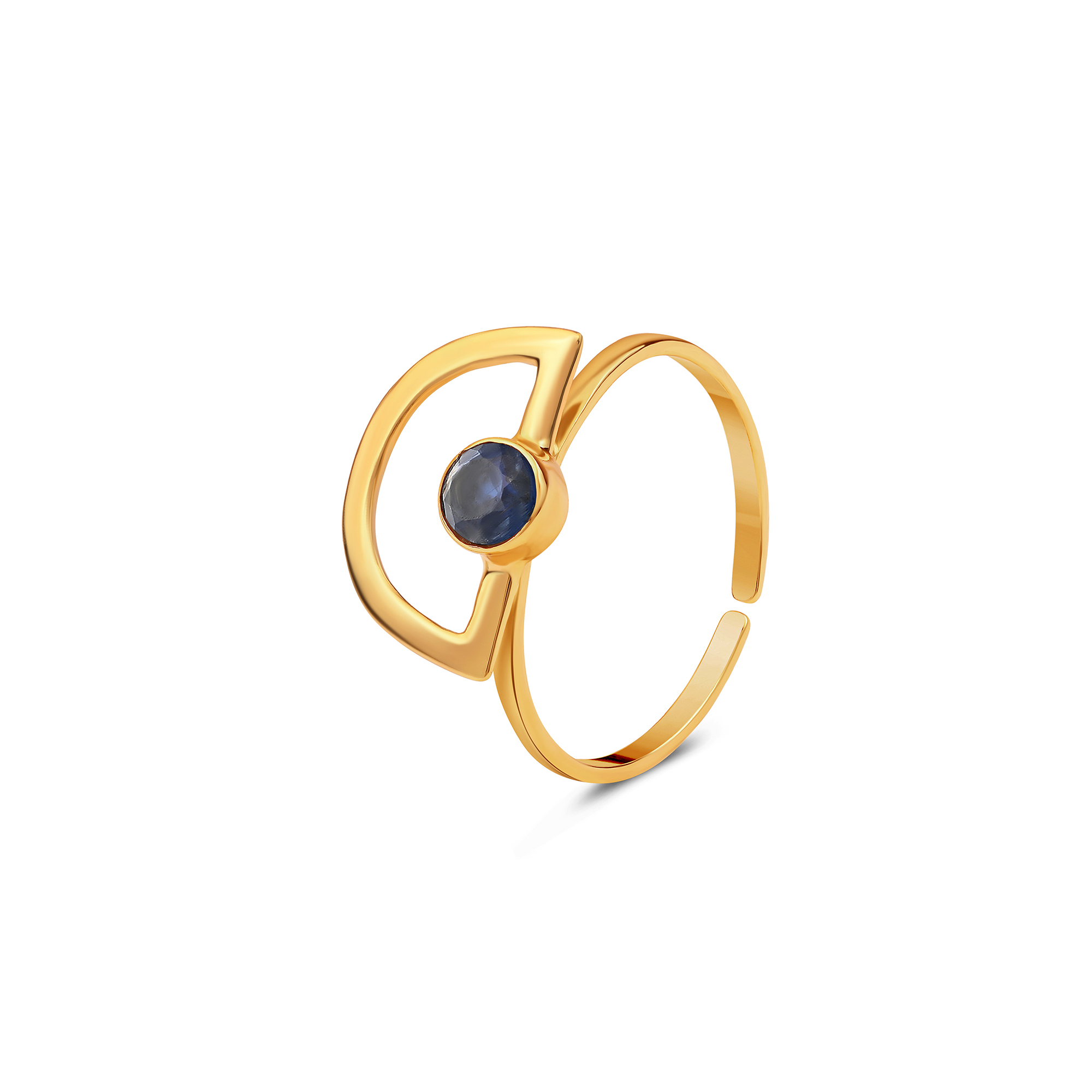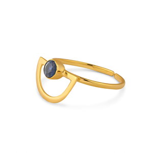 18k gold-plated band showcasing a deep blue kyanite stone, inspired by endless skies and calm seas.
