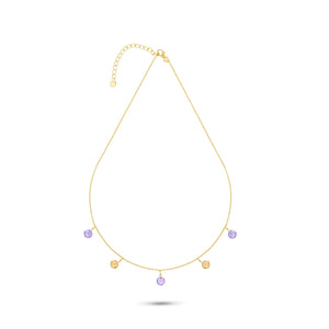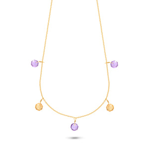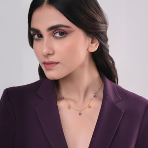 A vibrant blend of amethyst and citrine beads, the Citrus Trail chain is inspired by sunlit blooms and fresh floral paths. Handcrafted in 925 sterling silver with 18K gold plating.