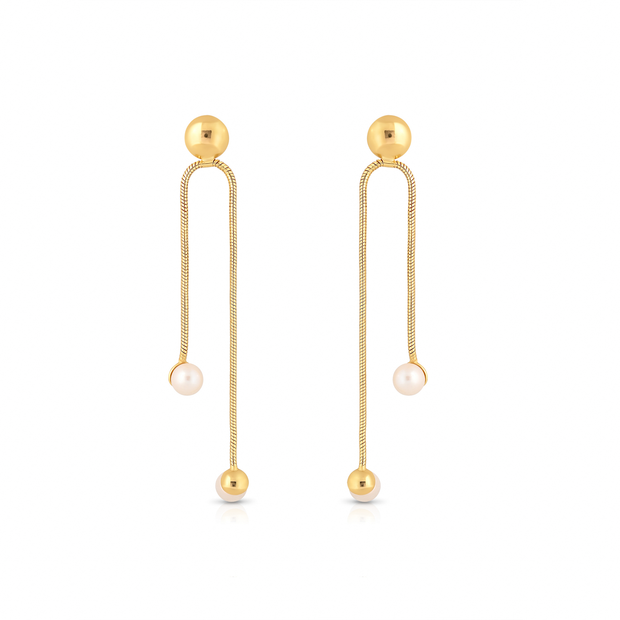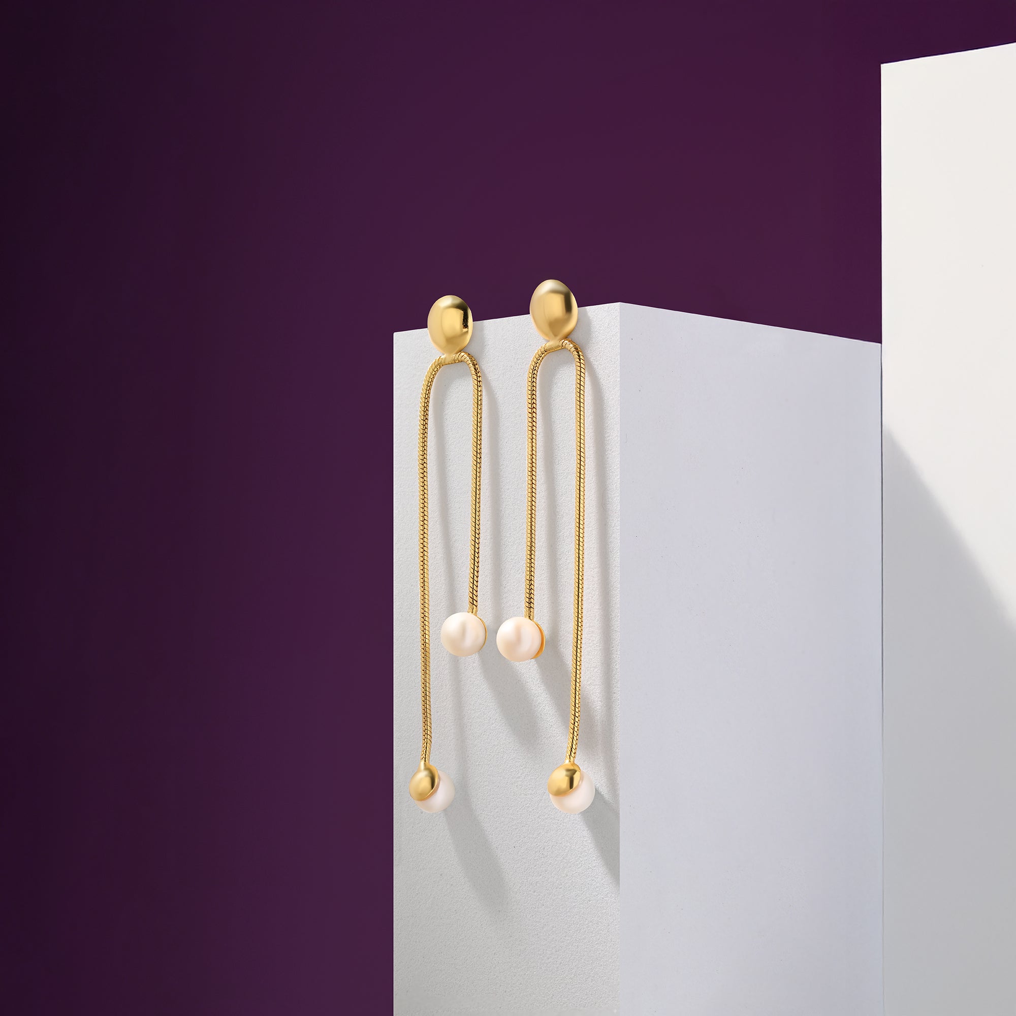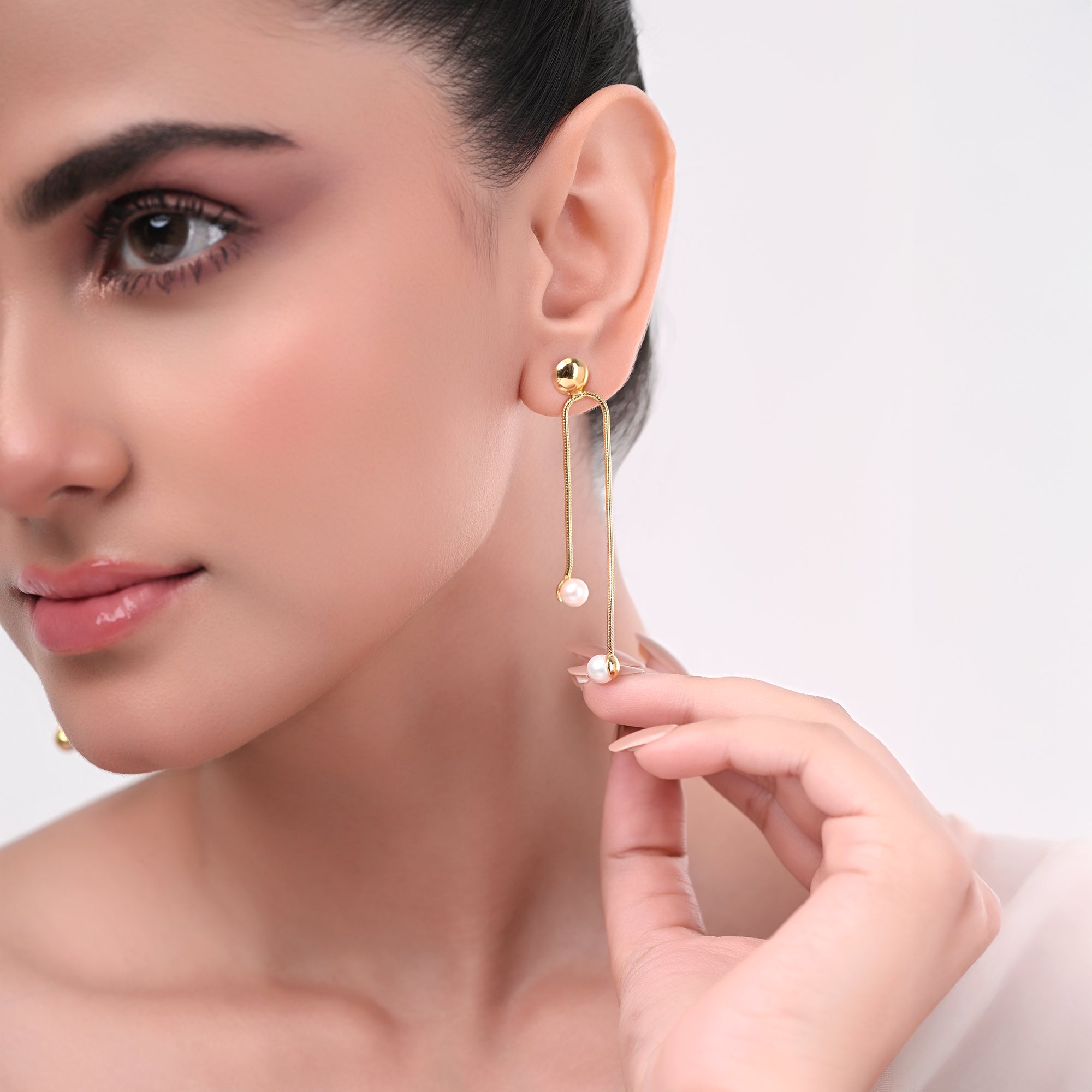 Elegant pearl drop danglers crafted in sterling silver with a luxurious 18k gold plating. A timeless blend of sophistication and charm, perfect for both modern and classic looks.