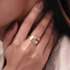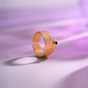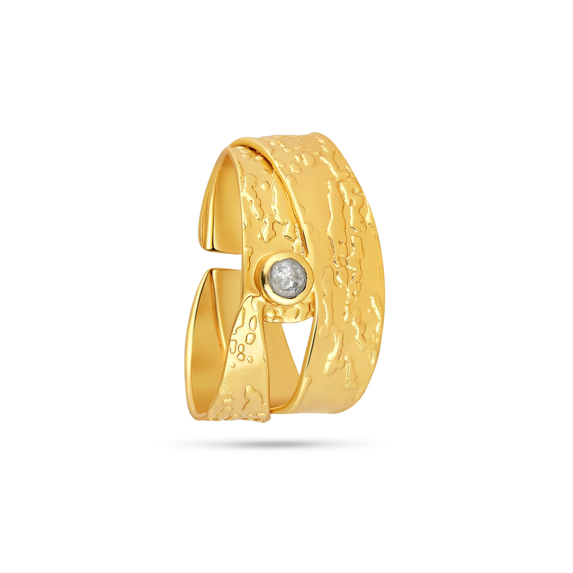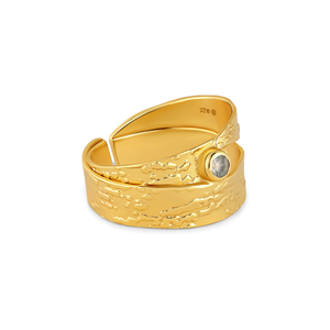 An 18k gold-plated ring showcasing a dazzling blue topaz, evoking the crisp, shimmering hues of a frozen ocean