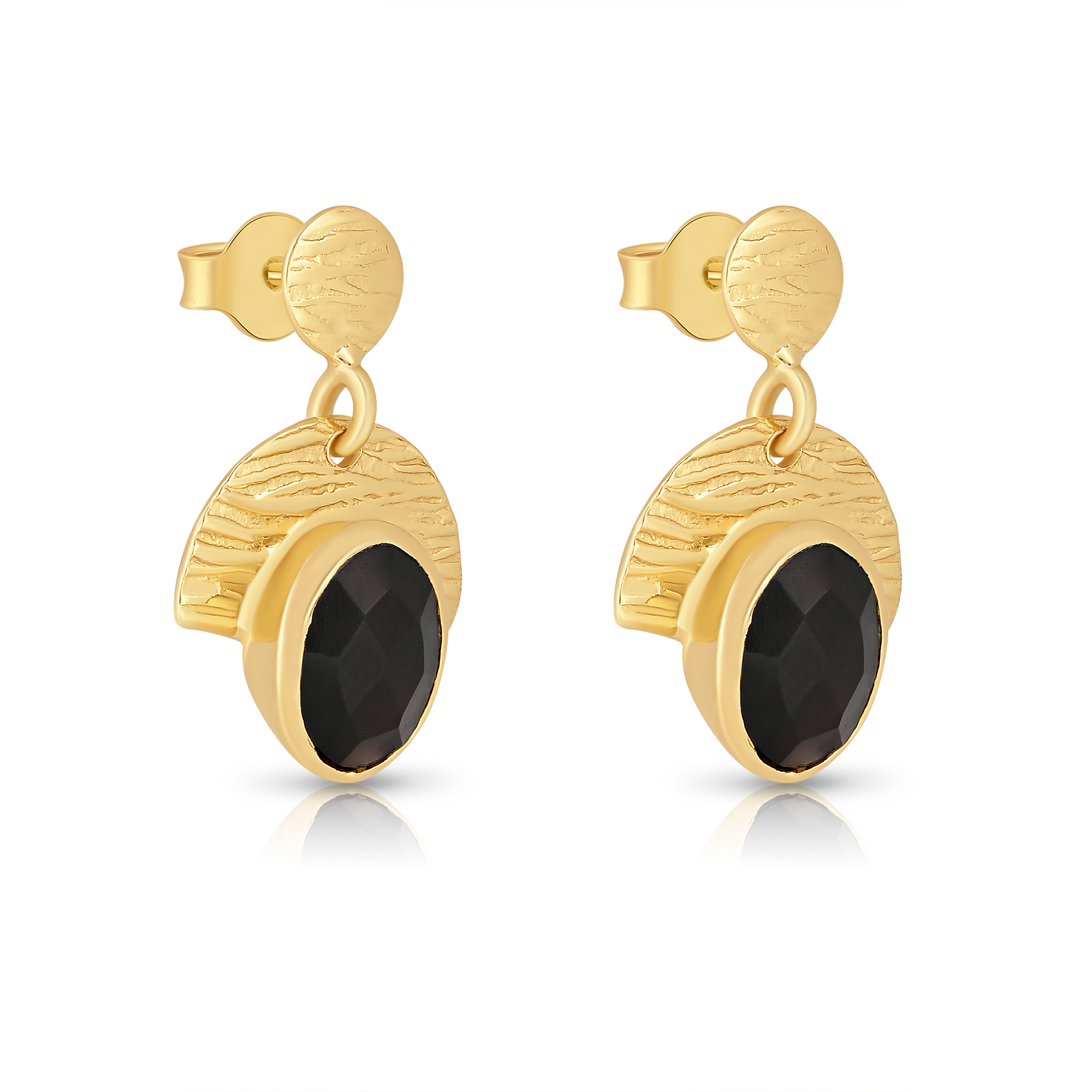 Striking black onyx paired with a textured gold-plated base — a bold contrast inspired by lunar beauty.