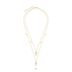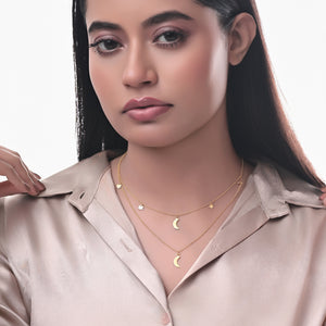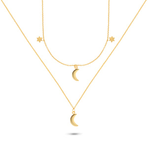This dreamy layered necklace sparkles with dainty star and moon charms, capturing the quiet magic of the night sky. Crafted in 925 sterling silver with 18K gold plating, it adds a celestial touch to your everyday glow.