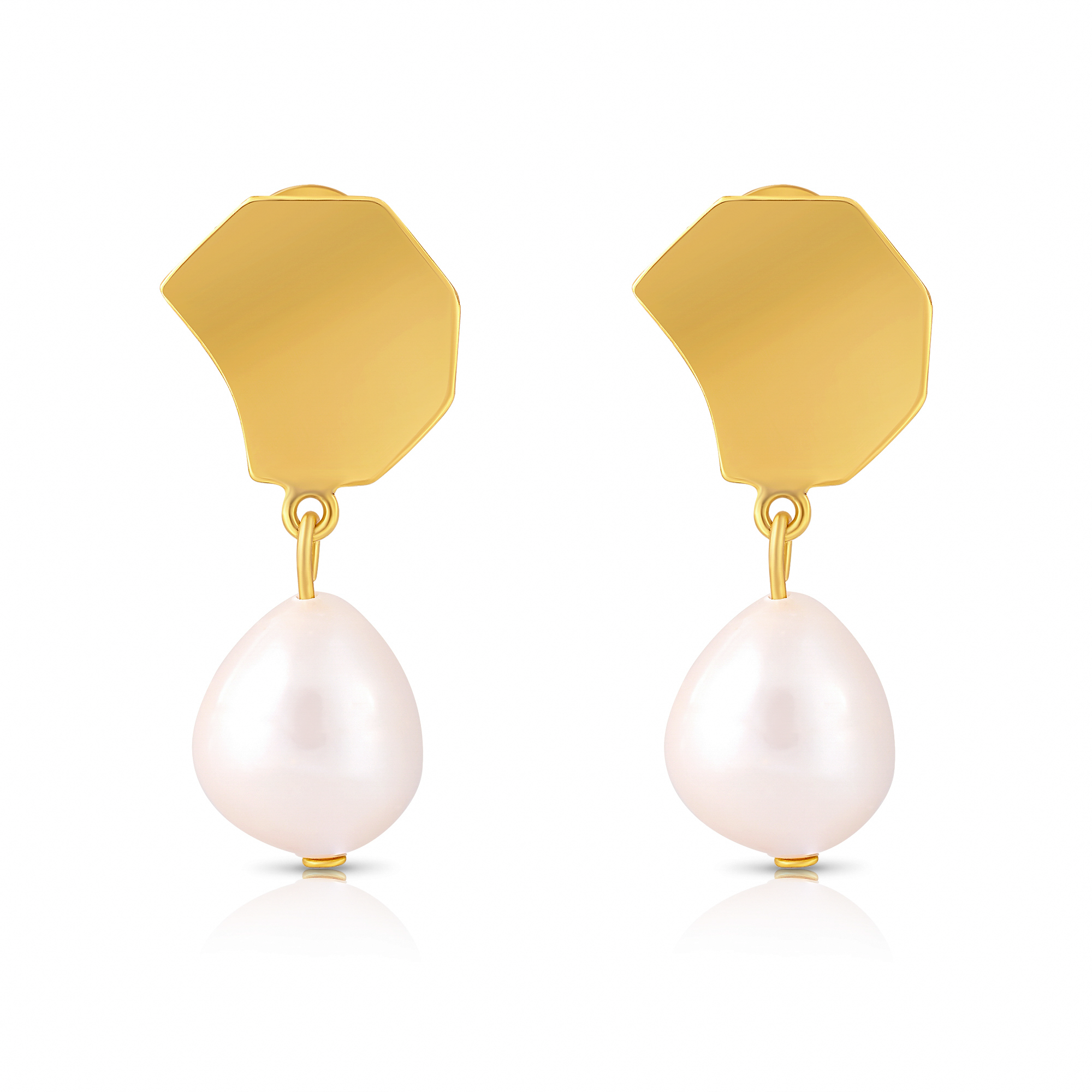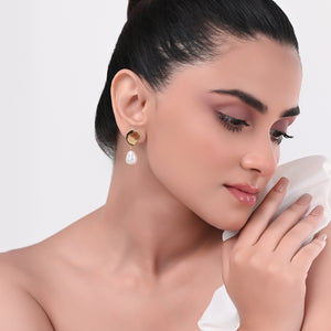 18k gold-plated disc top paired with a classic pearl drop below, blending modern minimalism with timeless elegance.