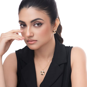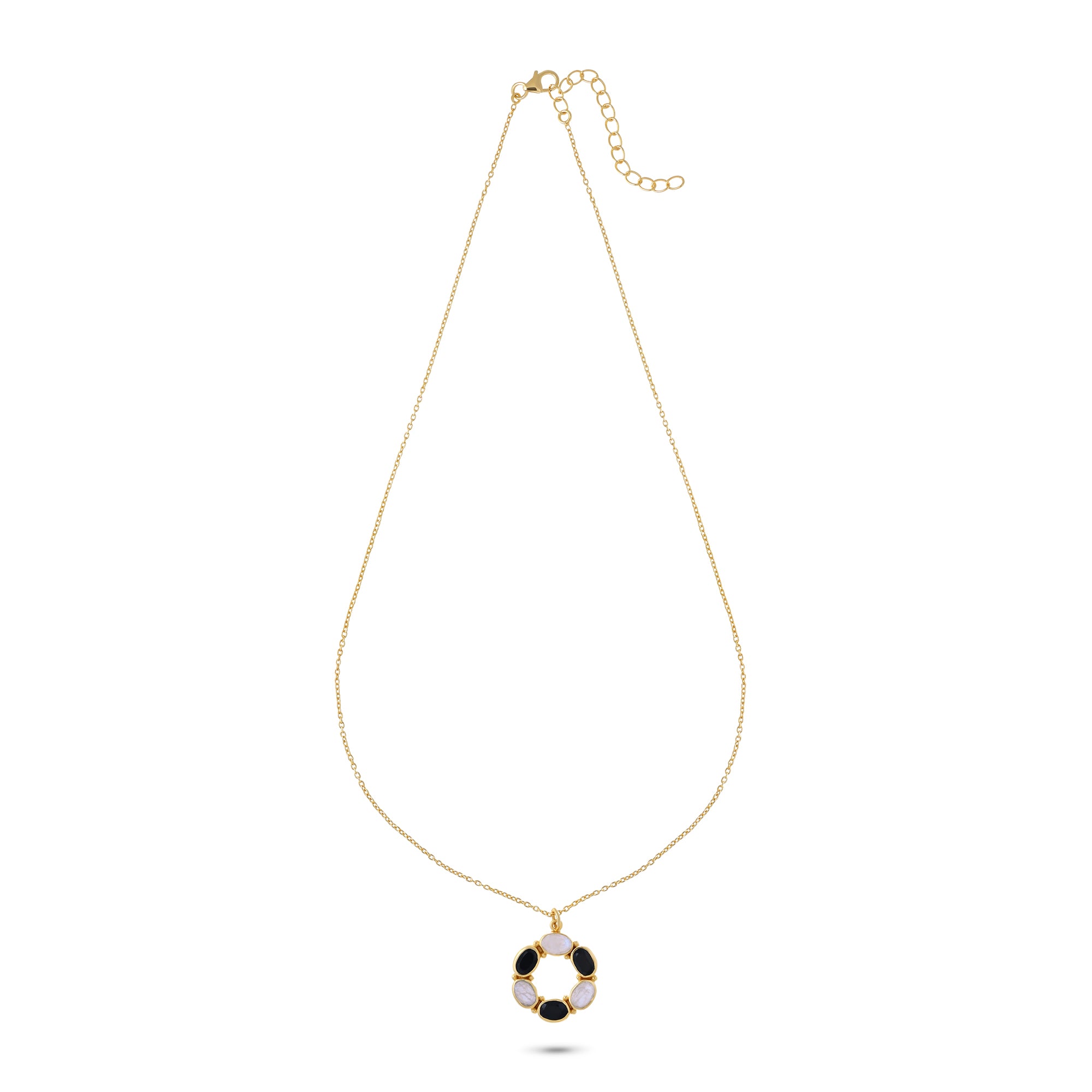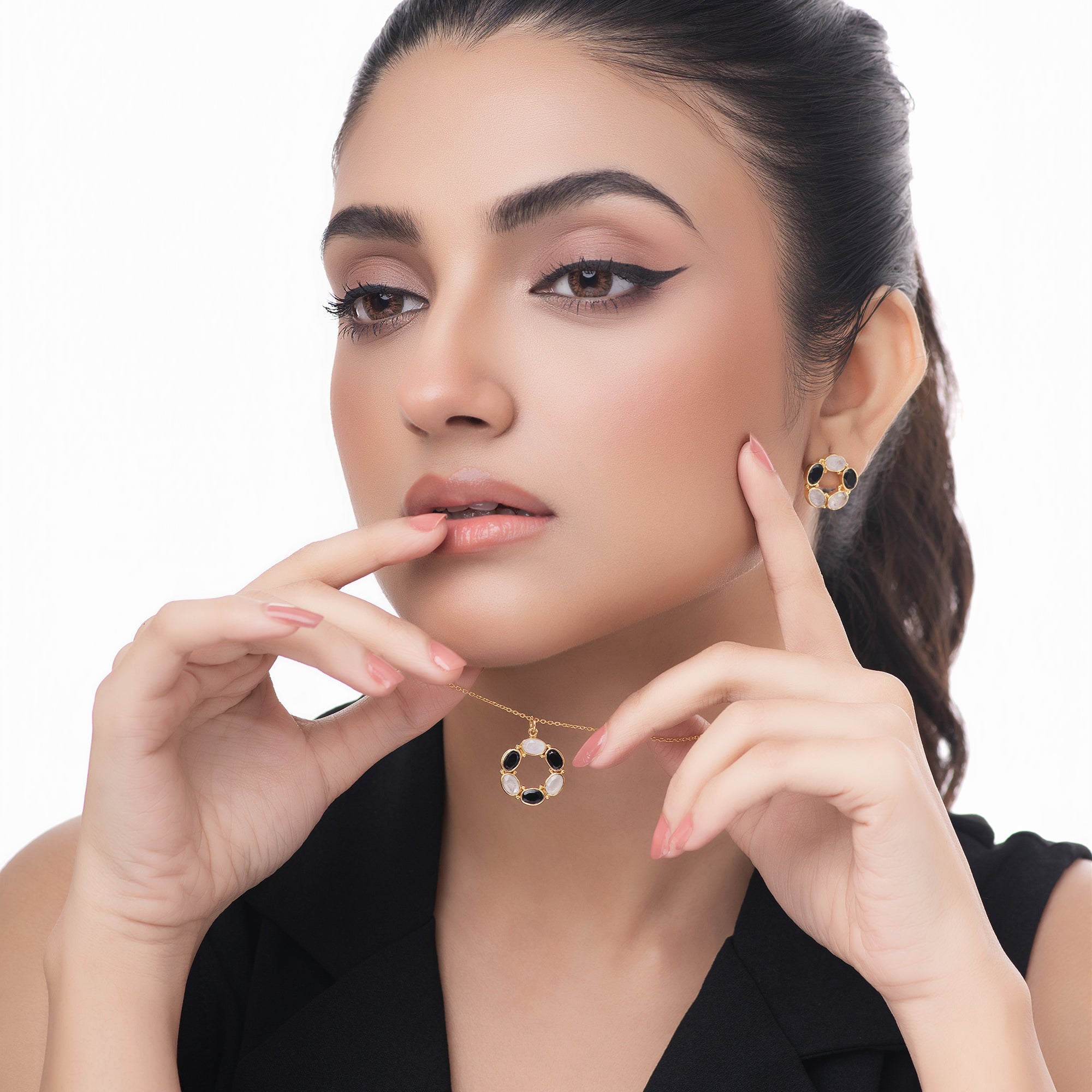 An enchanting pendant set in sterling silver 18k gold plated featuring alternating black and white stones, capturing the elegance of a winter night under the stars.