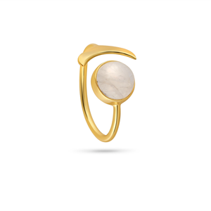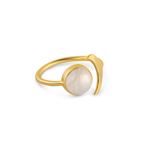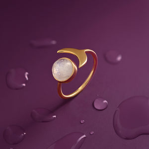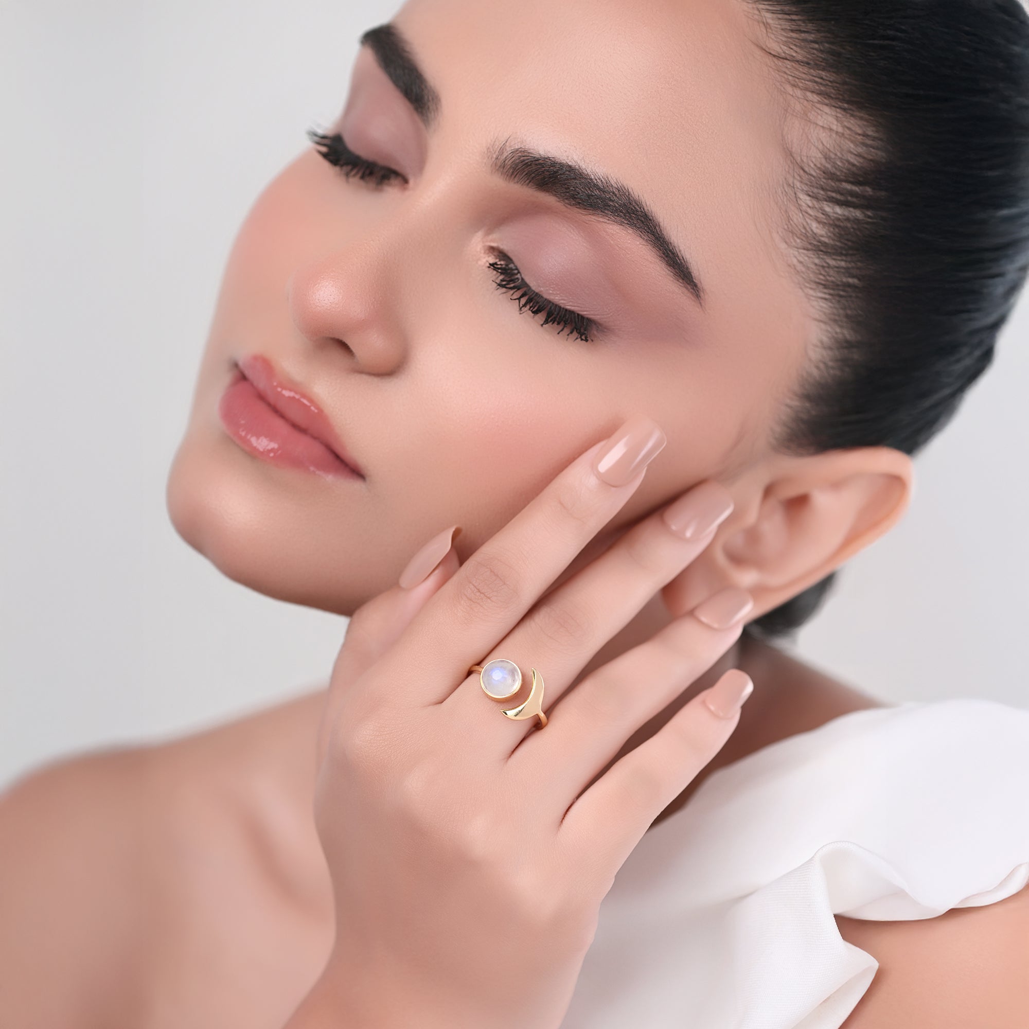 Glowing with serene elegance, this ring features a luminous moonstone set in gold-plated sterling silver. A dreamy, minimalist piece that captures the calm of moonlit nights.