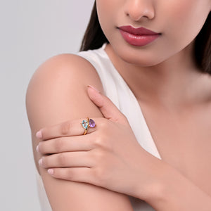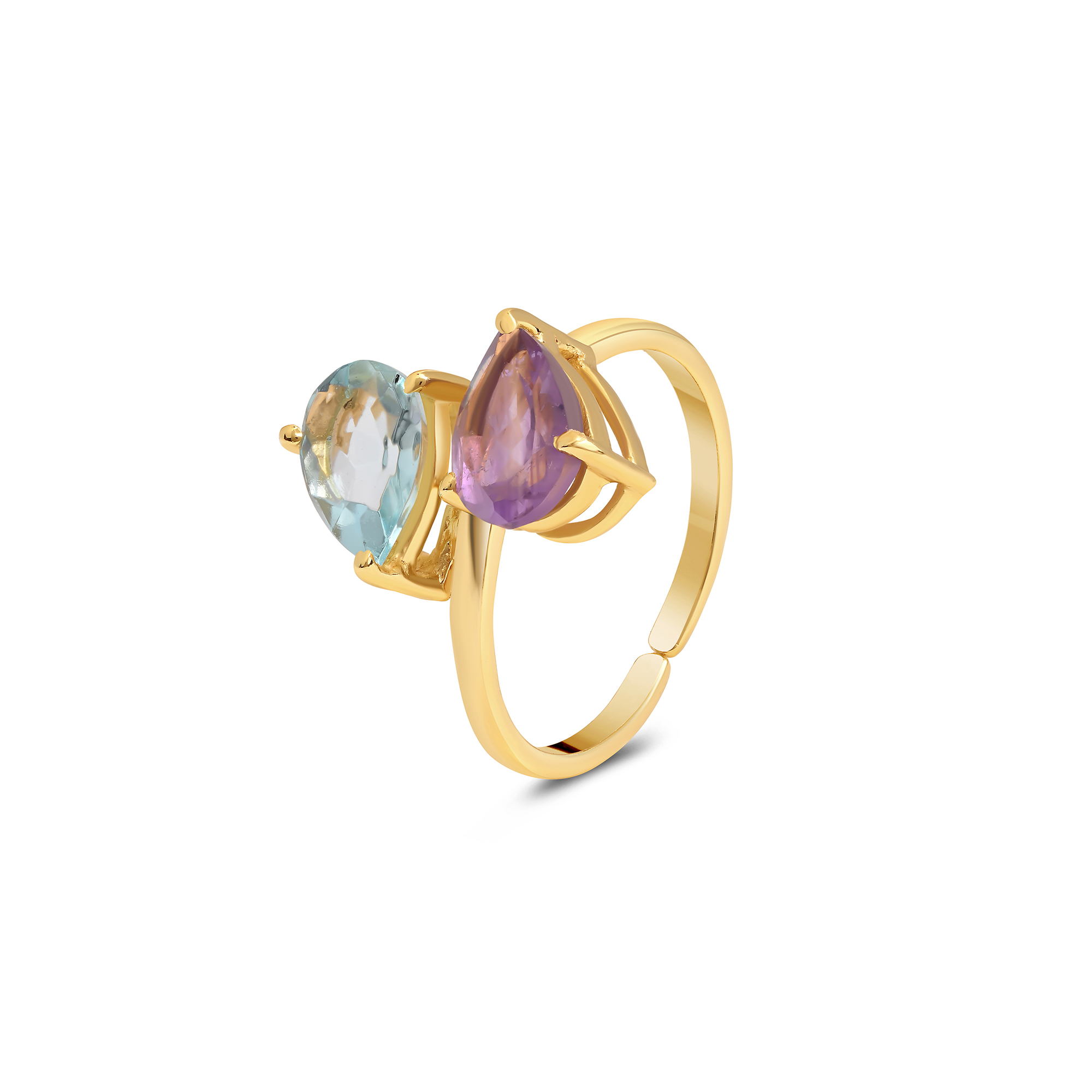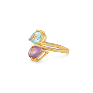 A dreamy duo of amethyst and blue topaz gemstones in a stunning teardrop design, set on gold-plated sterling silver