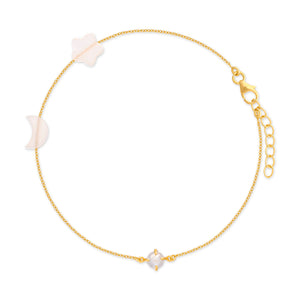 The Nyra design features glowing moonstone in delicate lunar shapes — a tribute to moonlit nights and feminine elegance.