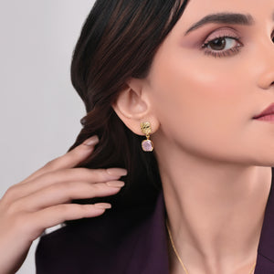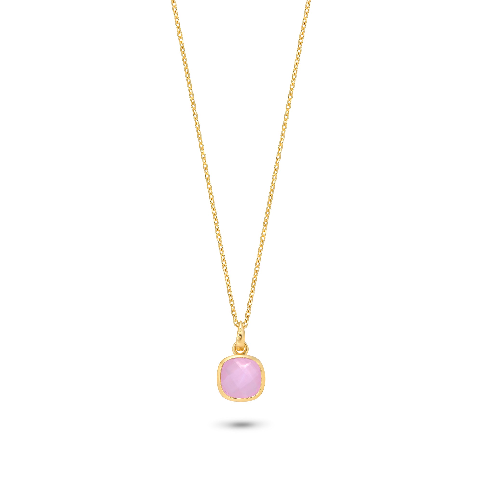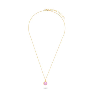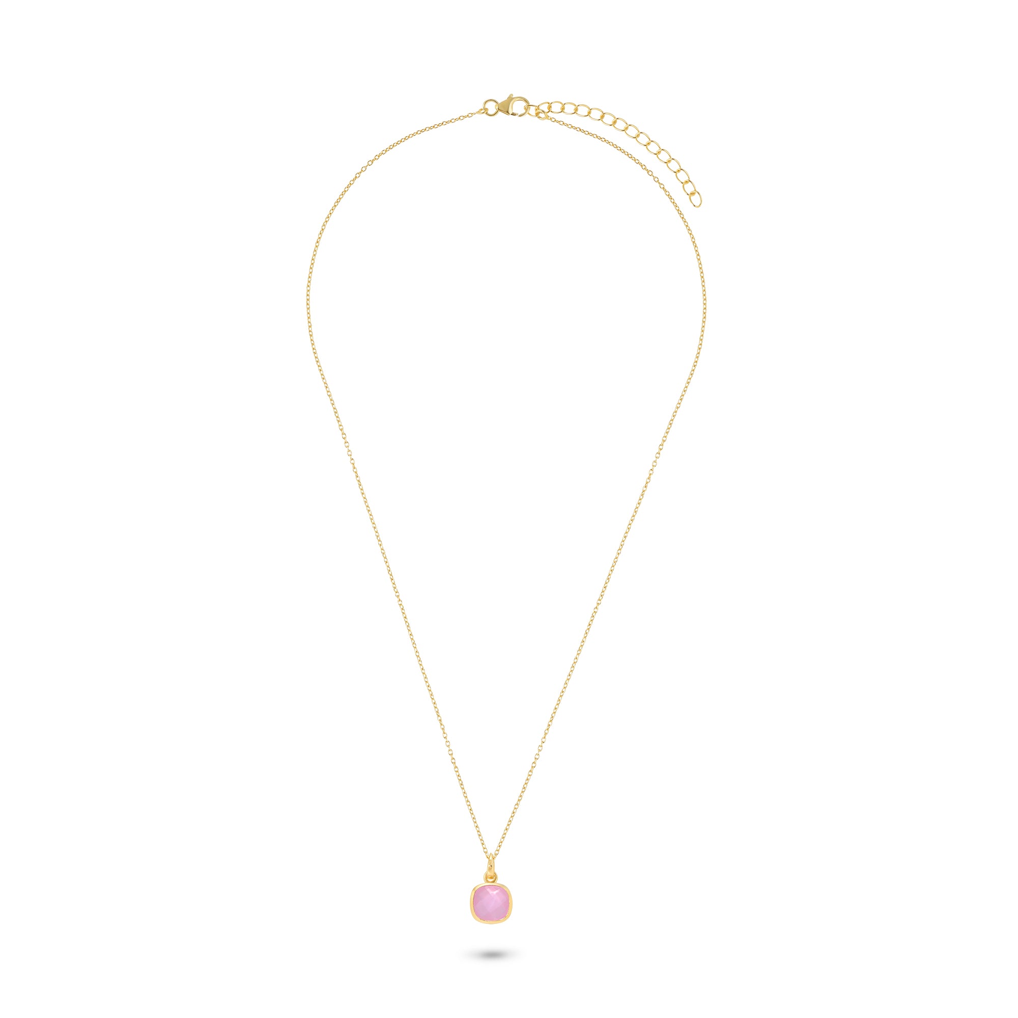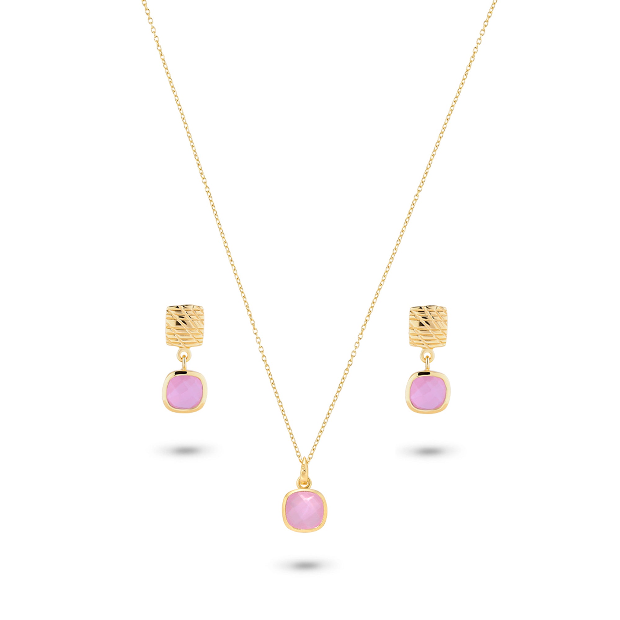 This chic pendant and earring set is crafted in 925 sterling silver with luxe gold plating, featuring soft blush pink stones in a modern cushion cut. A minimal yet sophisticated design for everyday elegance or graceful gifting.