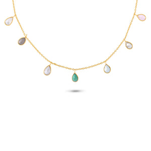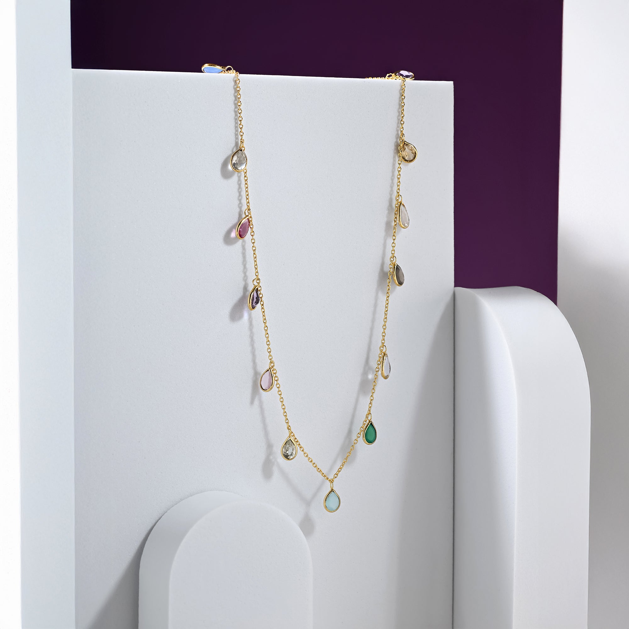 vibrant cascade of multi-colored semi-precious stones set in delicate gold-plated 925 sterling silver.