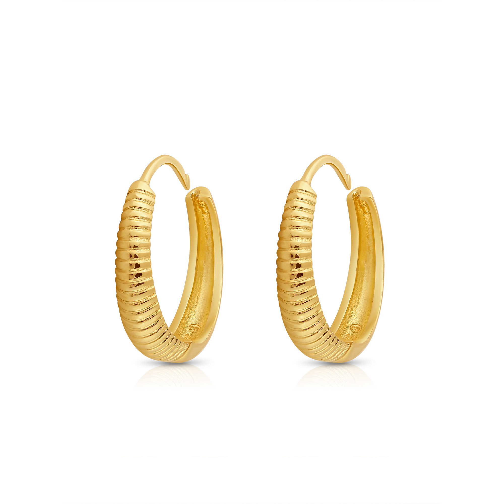 Timeless and elegant, the 18k gold plated sterling silver Sorella Hoops feature a rich textured finish that adds depth and charm to the classic hoop silhouette — a perfect balance of tradition and style.