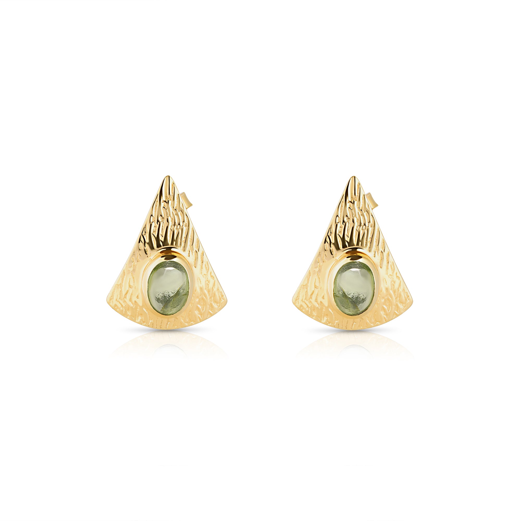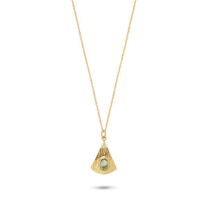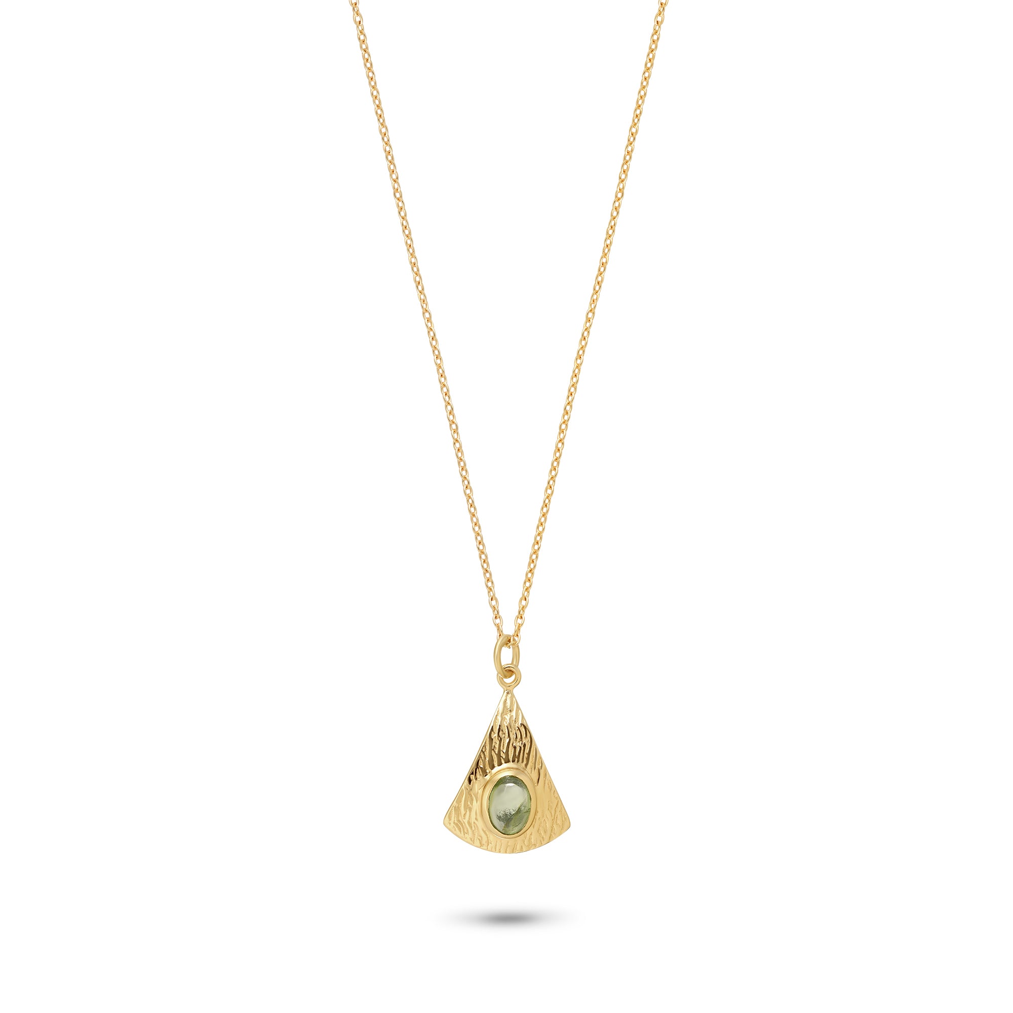 A bold and modern piece, Verdant Ray features a textured triangular pendant in 18K gold-plated 925 sterling silver, beautifully centered with a natural peridot stone.