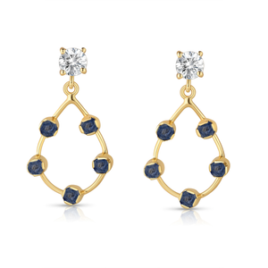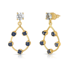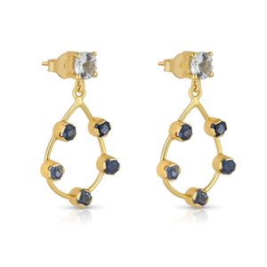Inspired by dusky blues — gold-plated drops with topaz and kyanite in a leaf-petal form.