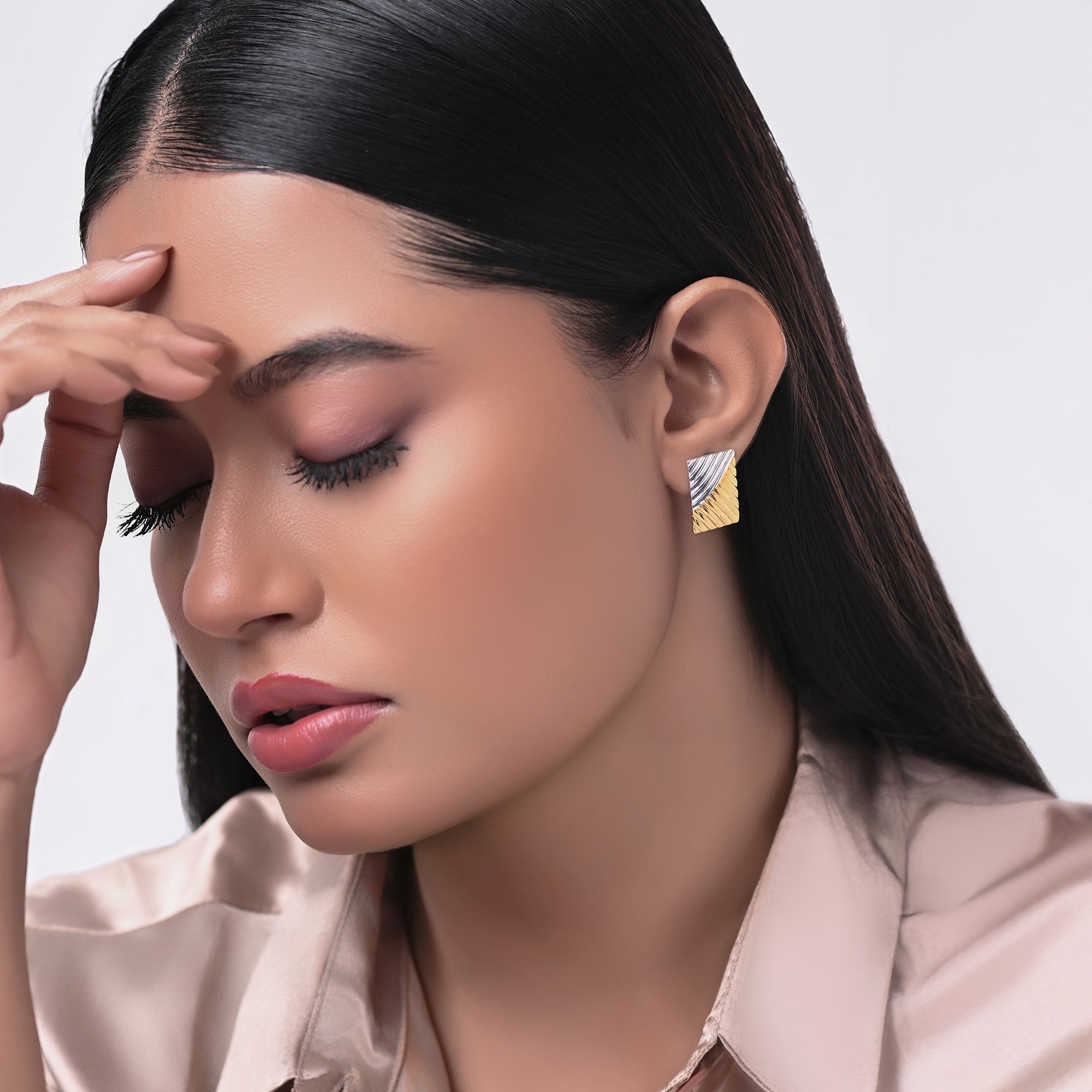 Elegant and contemporary, the Vivre Studs celebrate the art of duality with a seamless blend of sterling silver and 18k gold plating.