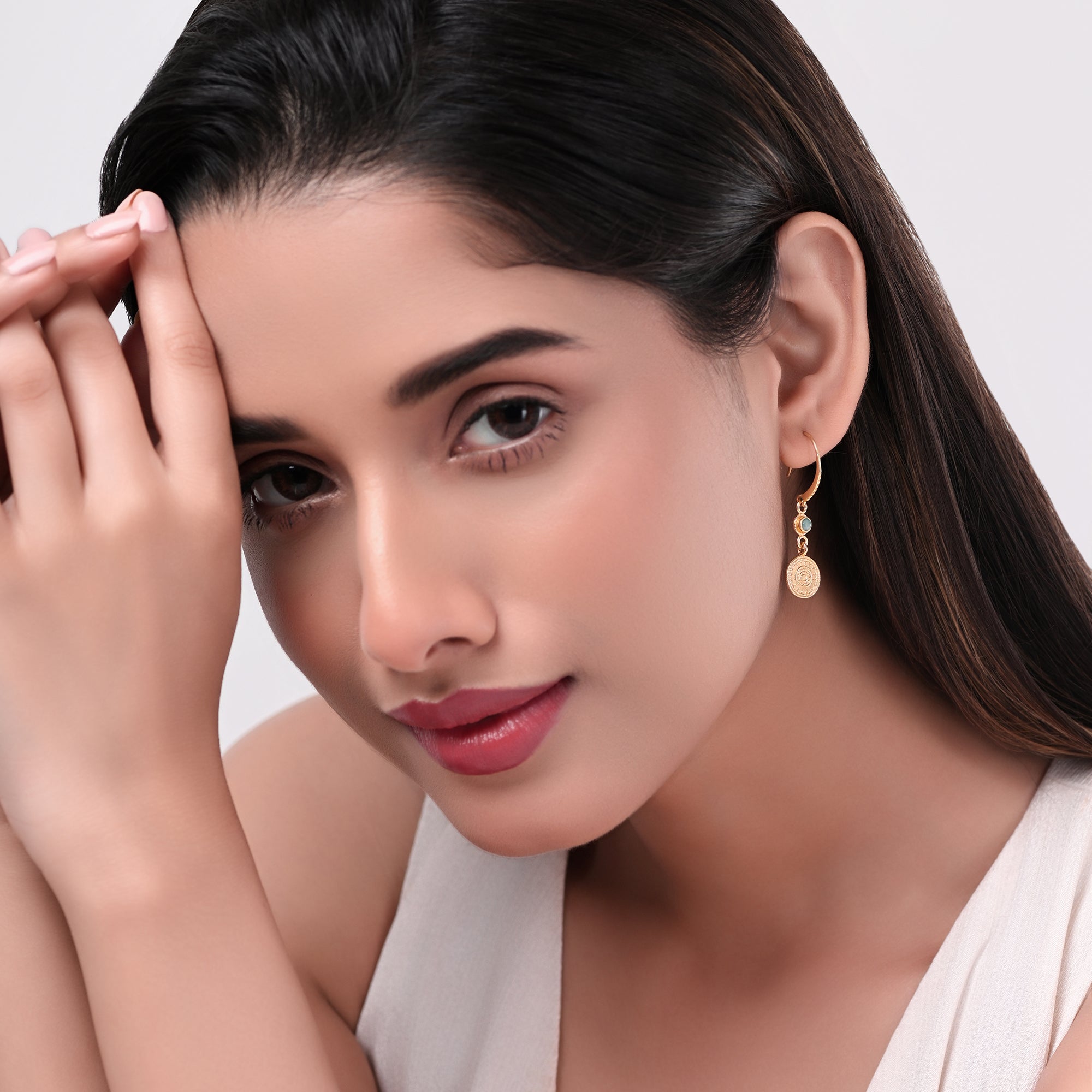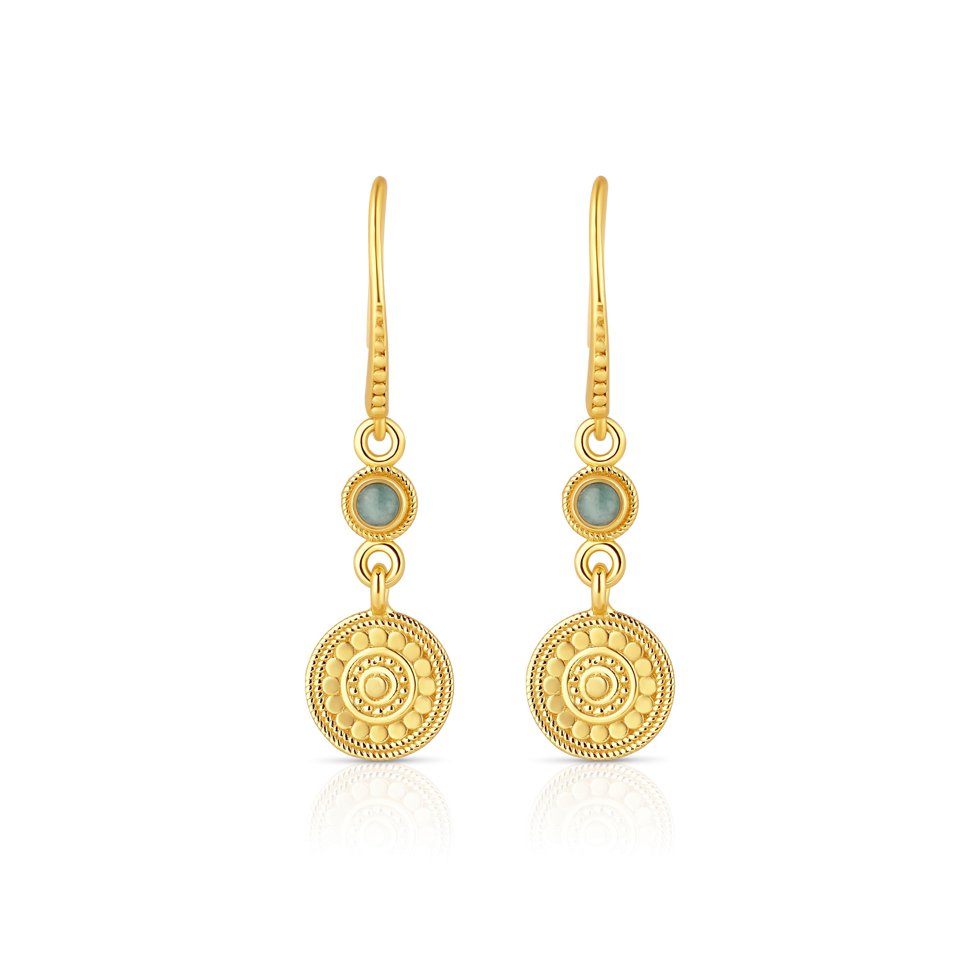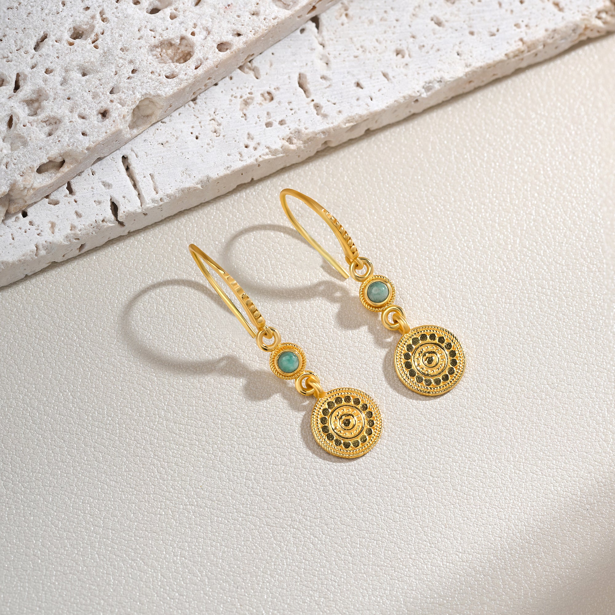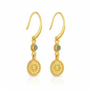 925 sterling silver, gold-plated. Drop earrings featuring amazonite stones and a vintage-inspired coin charm.
