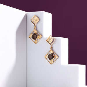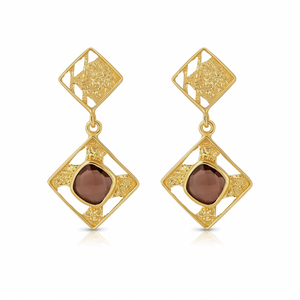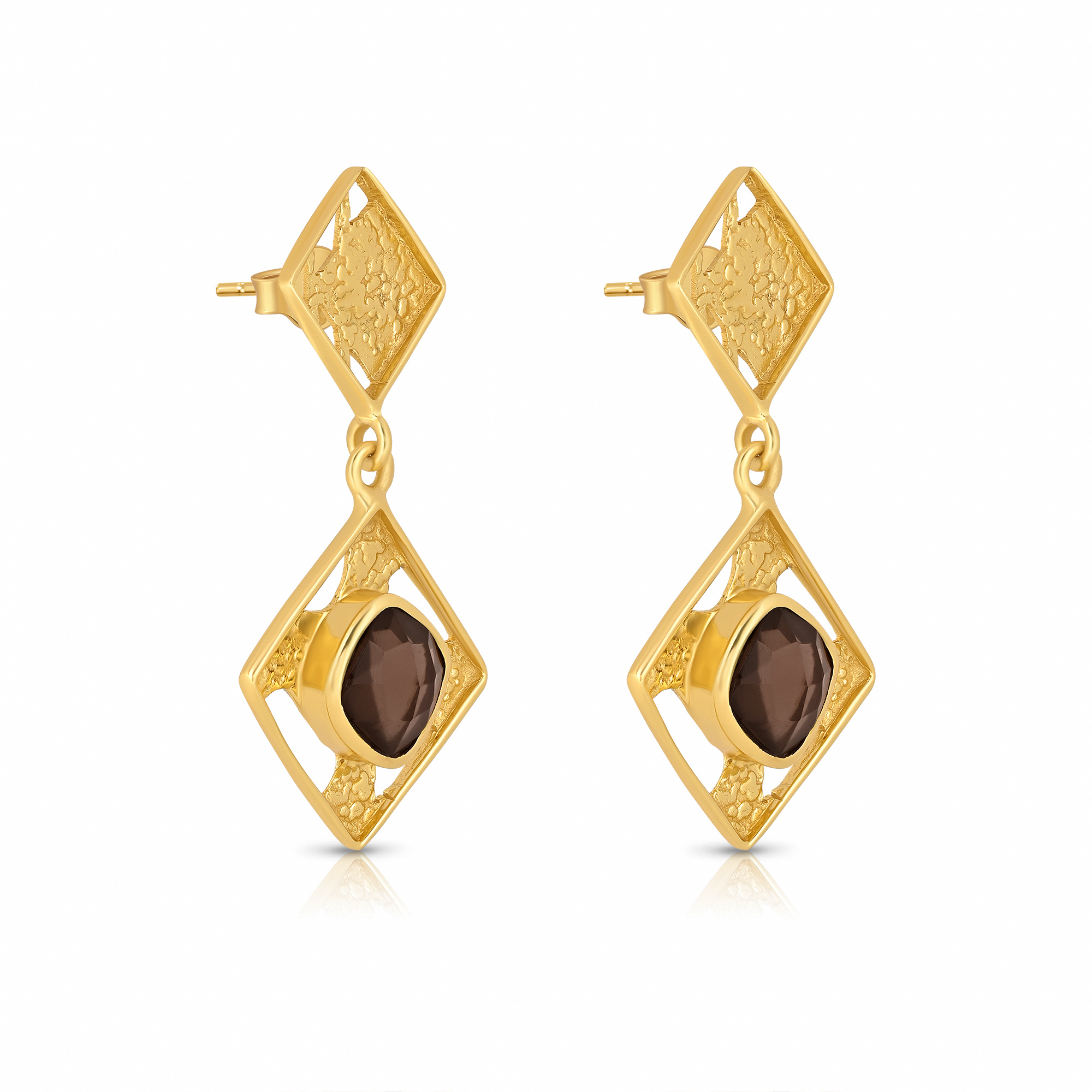 Elegant drop earrings featuring smoky quartz set in 18K gold-plated sterling silver, radiating warm mahogany hues with a soft, mysterious shimmer — a refined blend of earth and allure.