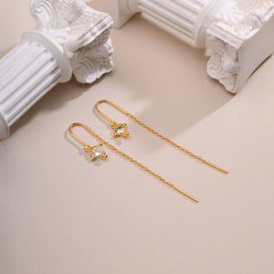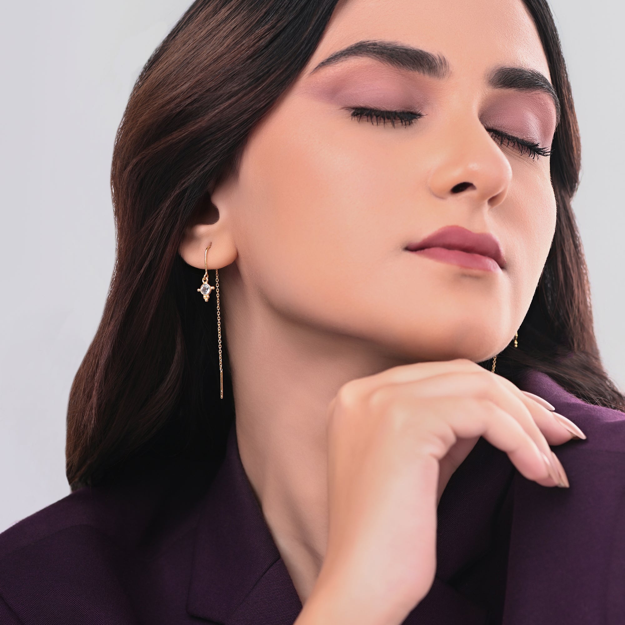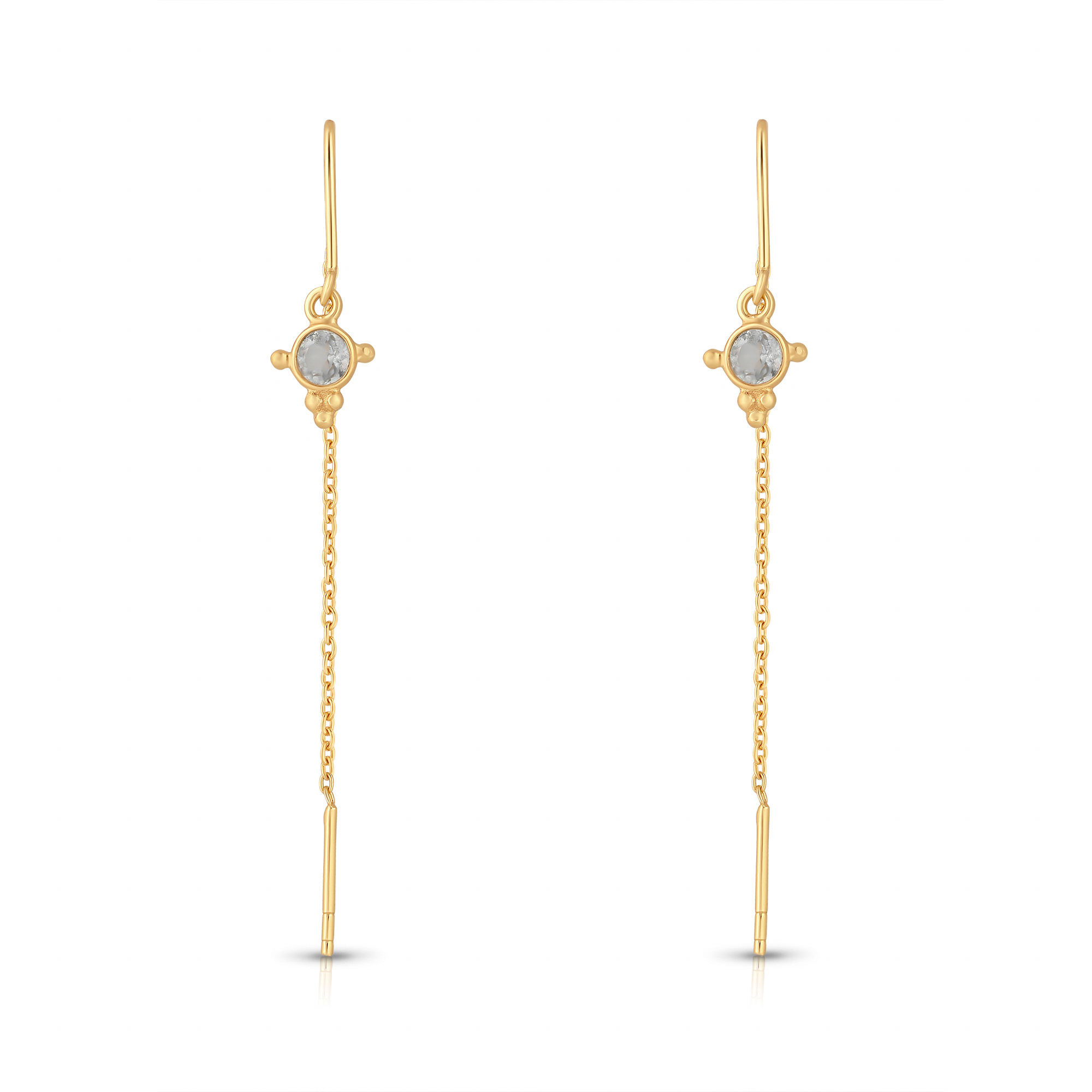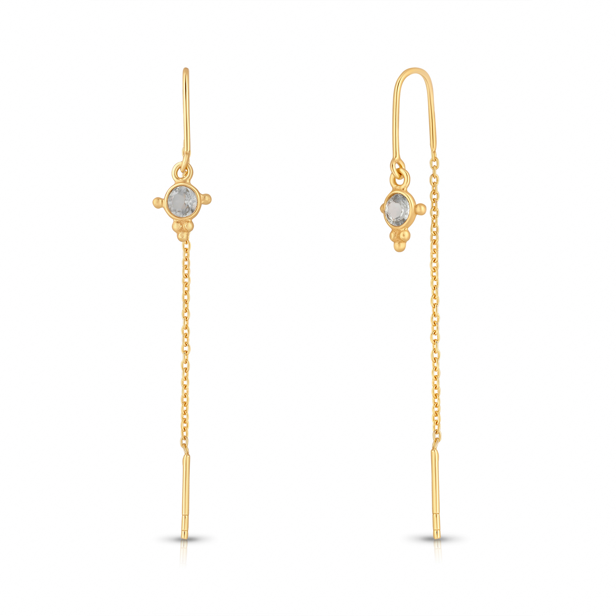 Sleek threaded earrings featuring radiant blue topaz set in 18K gold-plated sterling silver. A perfect blend of elegance and subtle sparkle for any occasion.