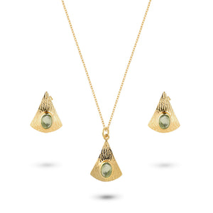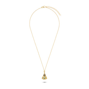 A bold and modern piece, Verdant Ray features a textured triangular pendant in 18K gold-plated 925 sterling silver, beautifully centered with a natural peridot stone.