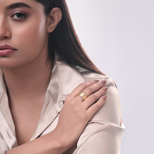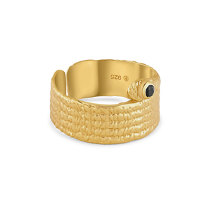18k gold-plated ring band showcasing a polished black onyx, merging bold sophistication with timeless style for a striking everyday statement