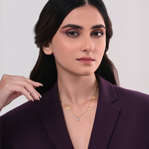 Blue gaze Chain features a delicate charm design with a striking blue topaz at its center. Crafted in 925 sterling silver with 18K gold plating, it brings subtle sparkle and serene energy to your everyday style.