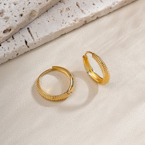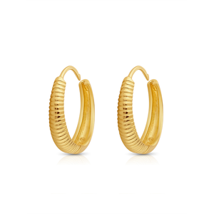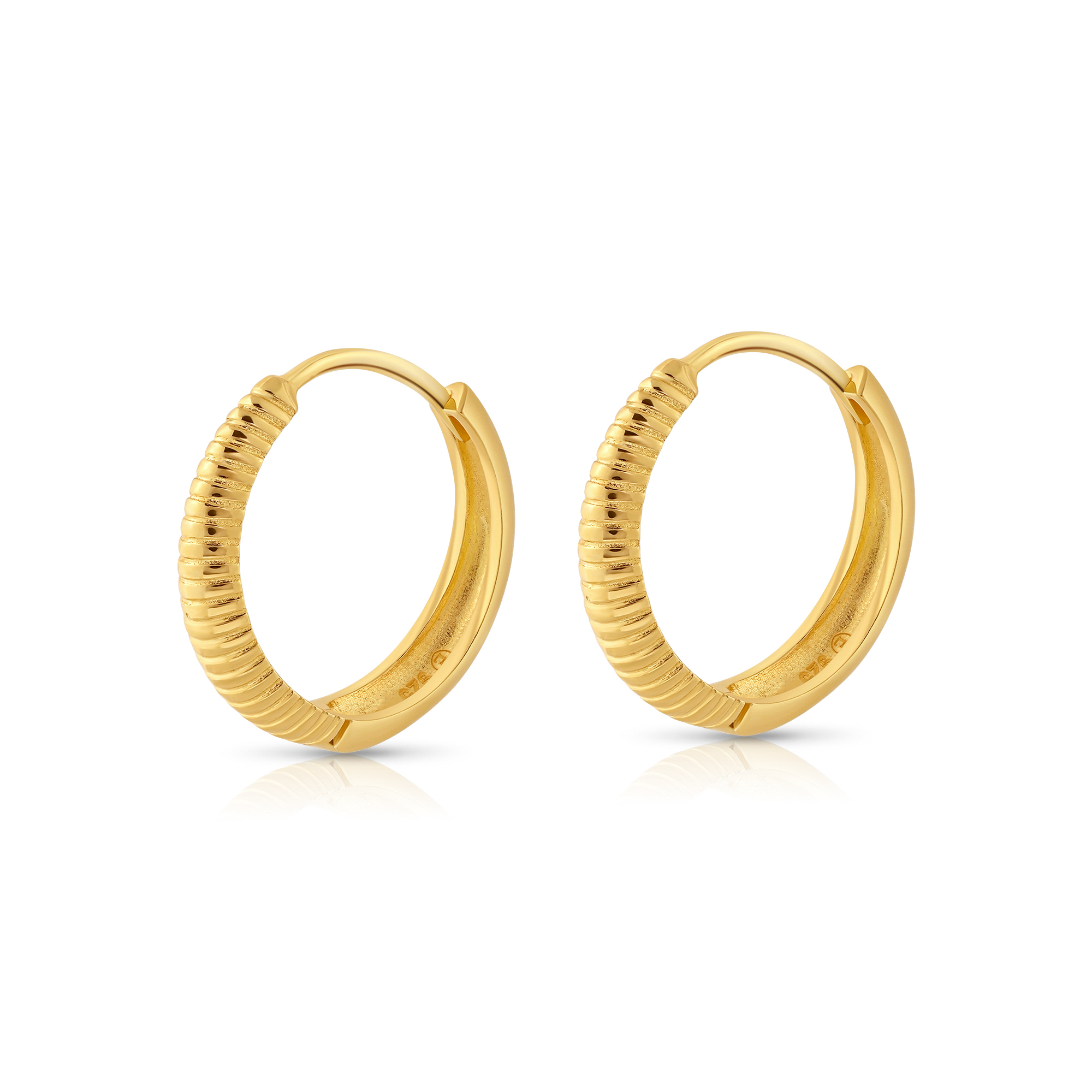 Timeless and elegant, the 18k gold plated sterling silver Sorella Hoops feature a rich textured finish that adds depth and charm to the classic hoop silhouette — a perfect balance of tradition and style.