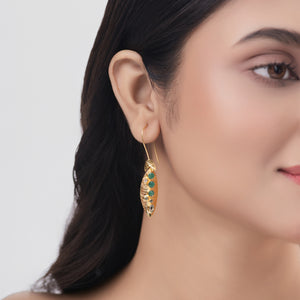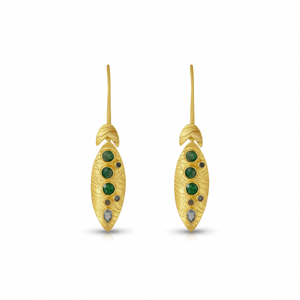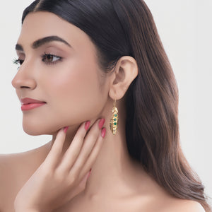 Delicately crafted leaf-shaped earrings featuring a radiant blend of green amethyst and emerald stones, capturing the soft glow and vibrant spirit of moss under dappled sunlight. These 18k gold-plated drops bring a fresh, earthy elegance perfect for boho-inspired looks with a luxe touch.