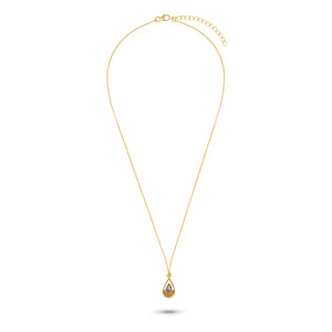 Delicate and luminous, Berry drip features a soft-hued strawberry quartz in a teardrop silhouette, set in 925 sterling silver with 18K gold plating
