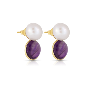 A graceful union of elegance and mystique, the blossom ode feature a luminous pearl atop a rich purple amethyst, capturing the charm of twilight in a refined, feminine design.