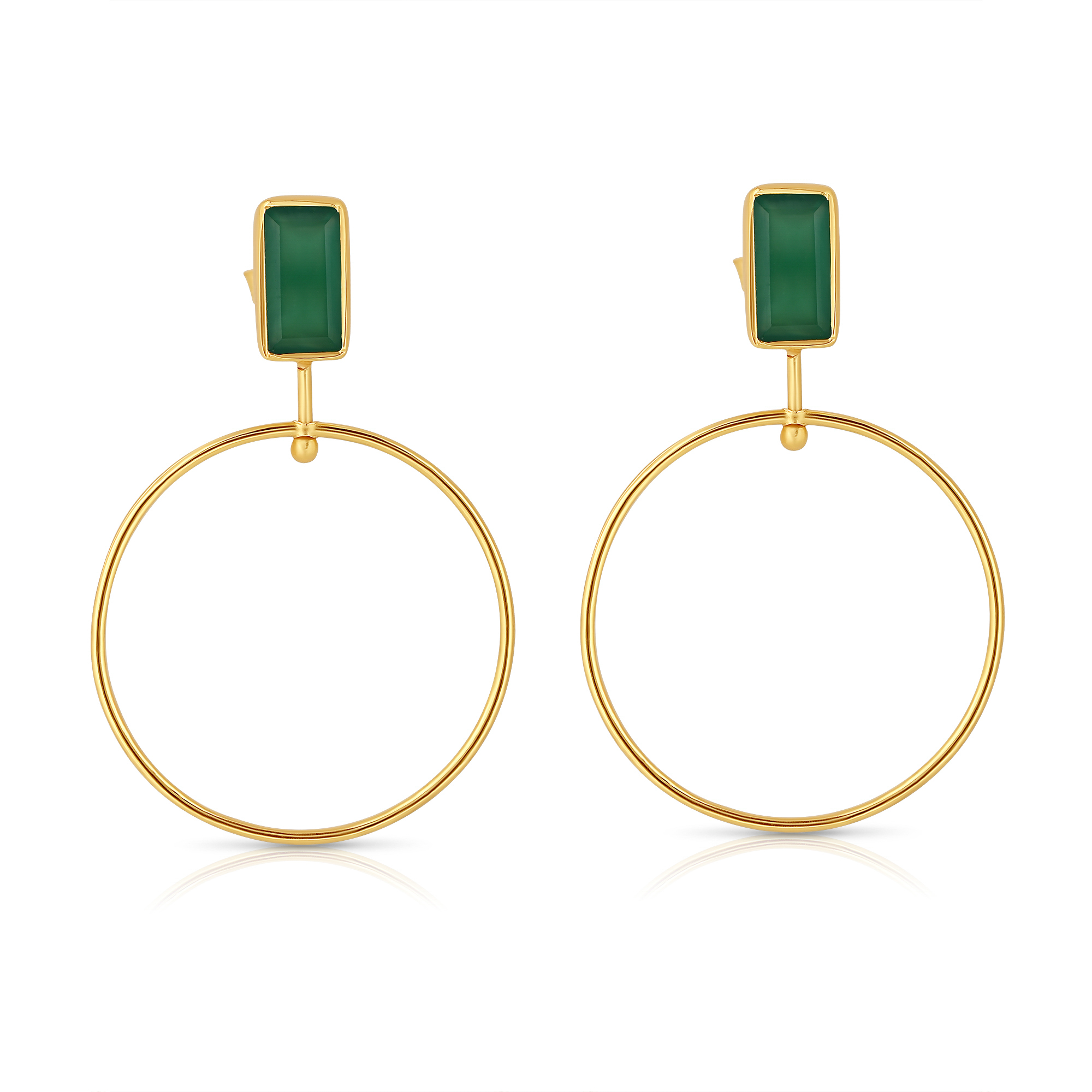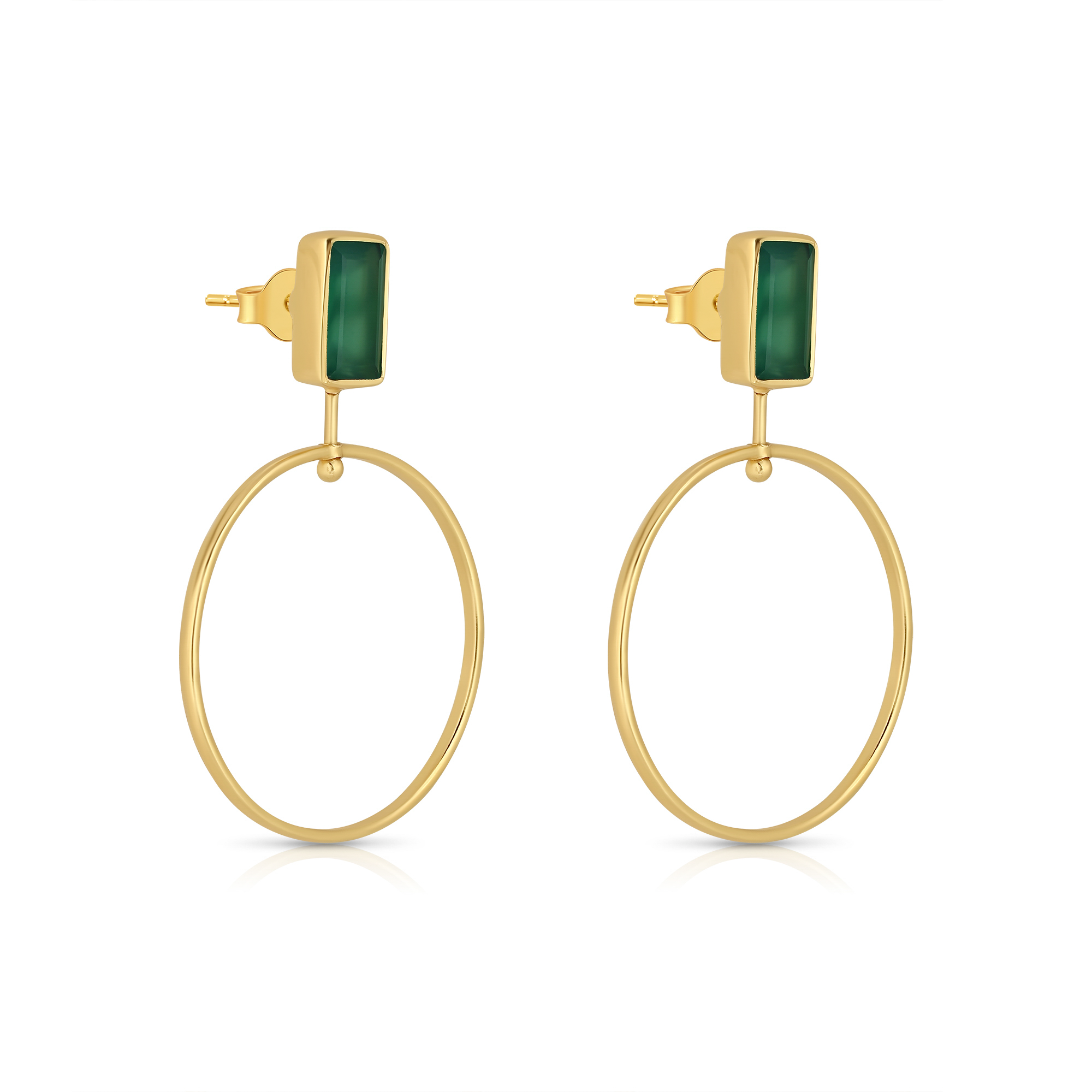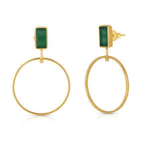 Sleek modern hoops featuring rich green onyx, set in 18K gold-plated sterling silver.
