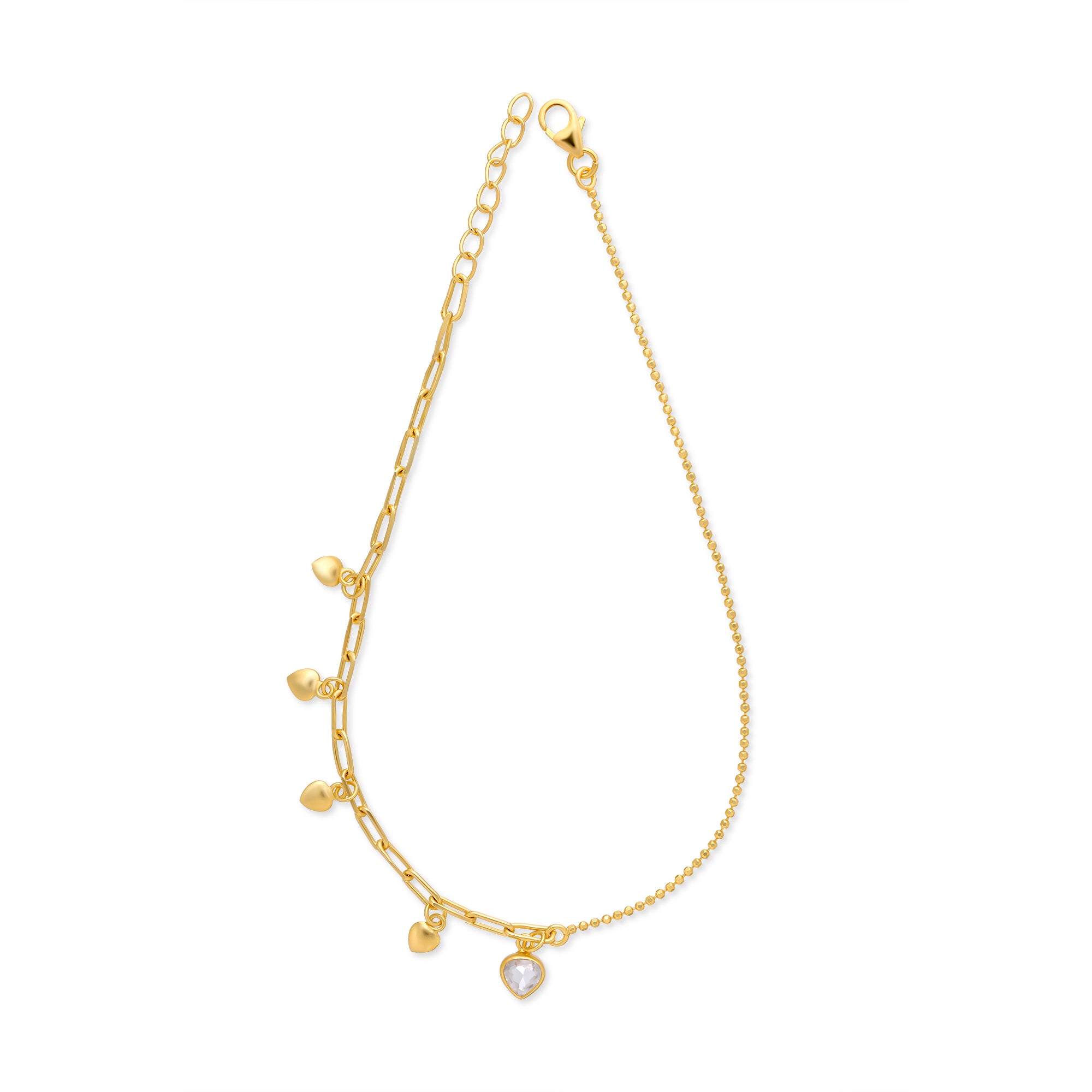 The Esmé Anklet radiates elegance with a dainty heart crystal charm in 18k gold plated sterling silver — a sweet symbol of affection and timeless beauty.