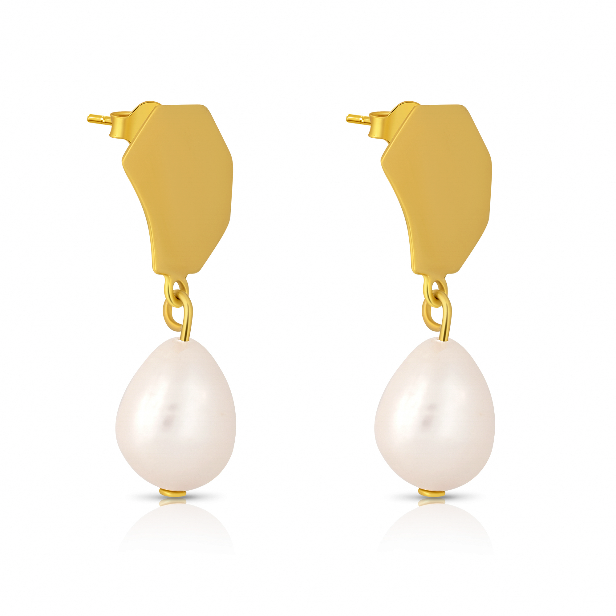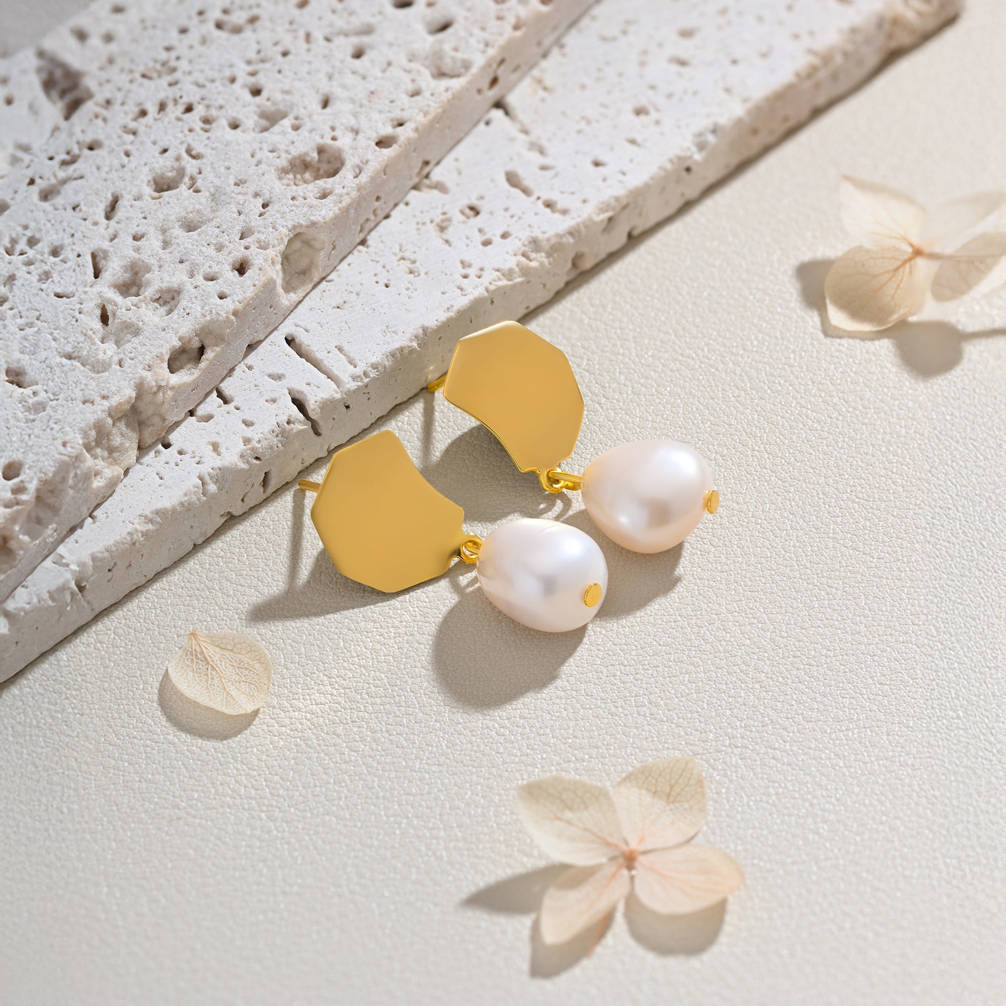 18k gold-plated disc top paired with a classic pearl drop below, blending modern minimalism with timeless elegance.