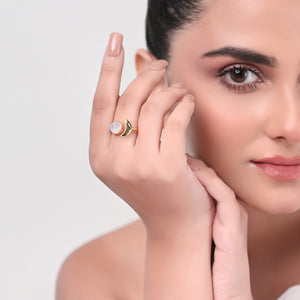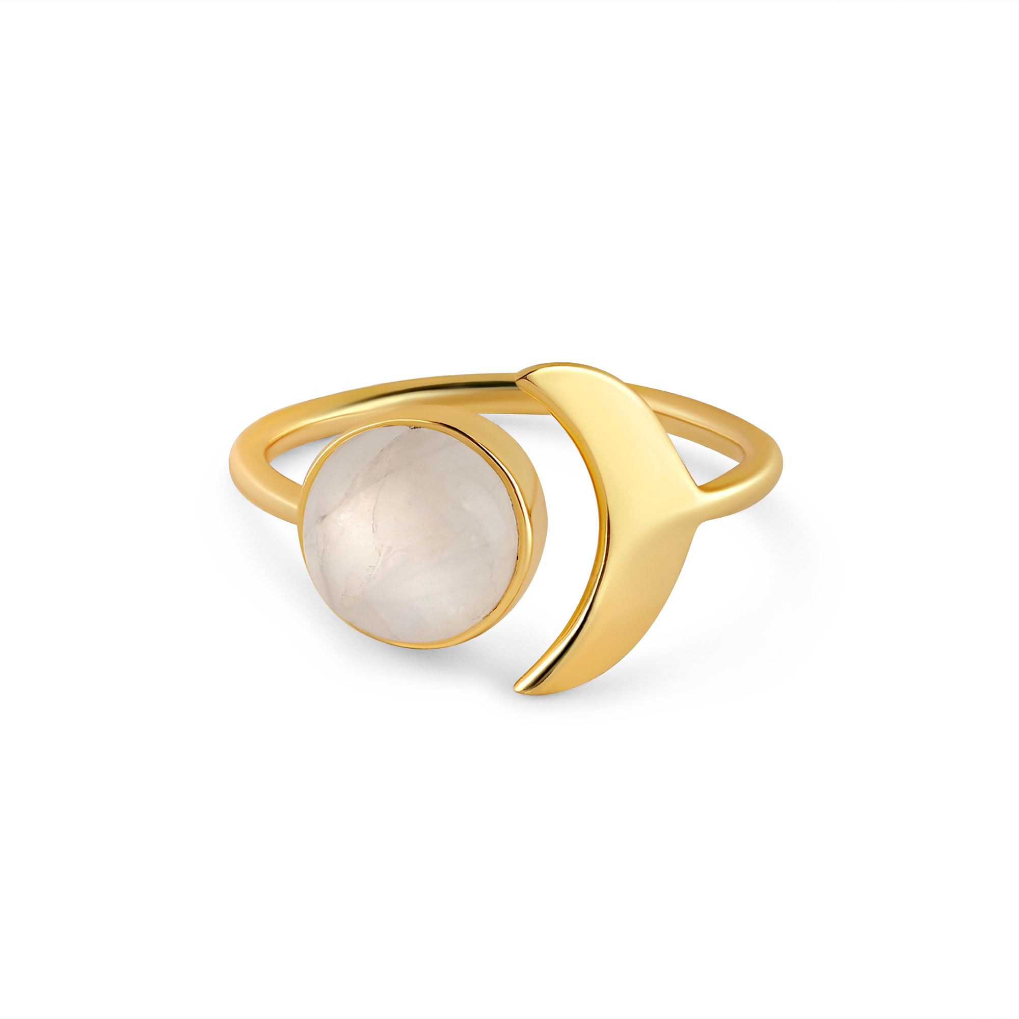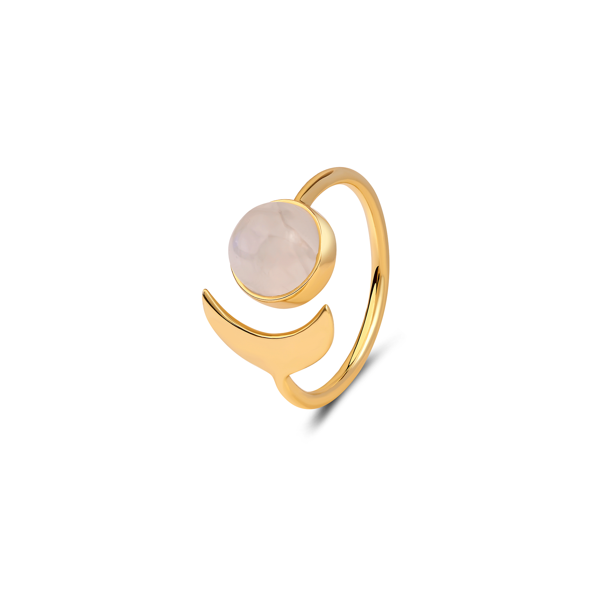 Glowing with serene elegance, this ring features a luminous moonstone set in gold-plated sterling silver. A dreamy, minimalist piece that captures the calm of moonlit nights.