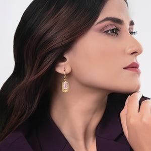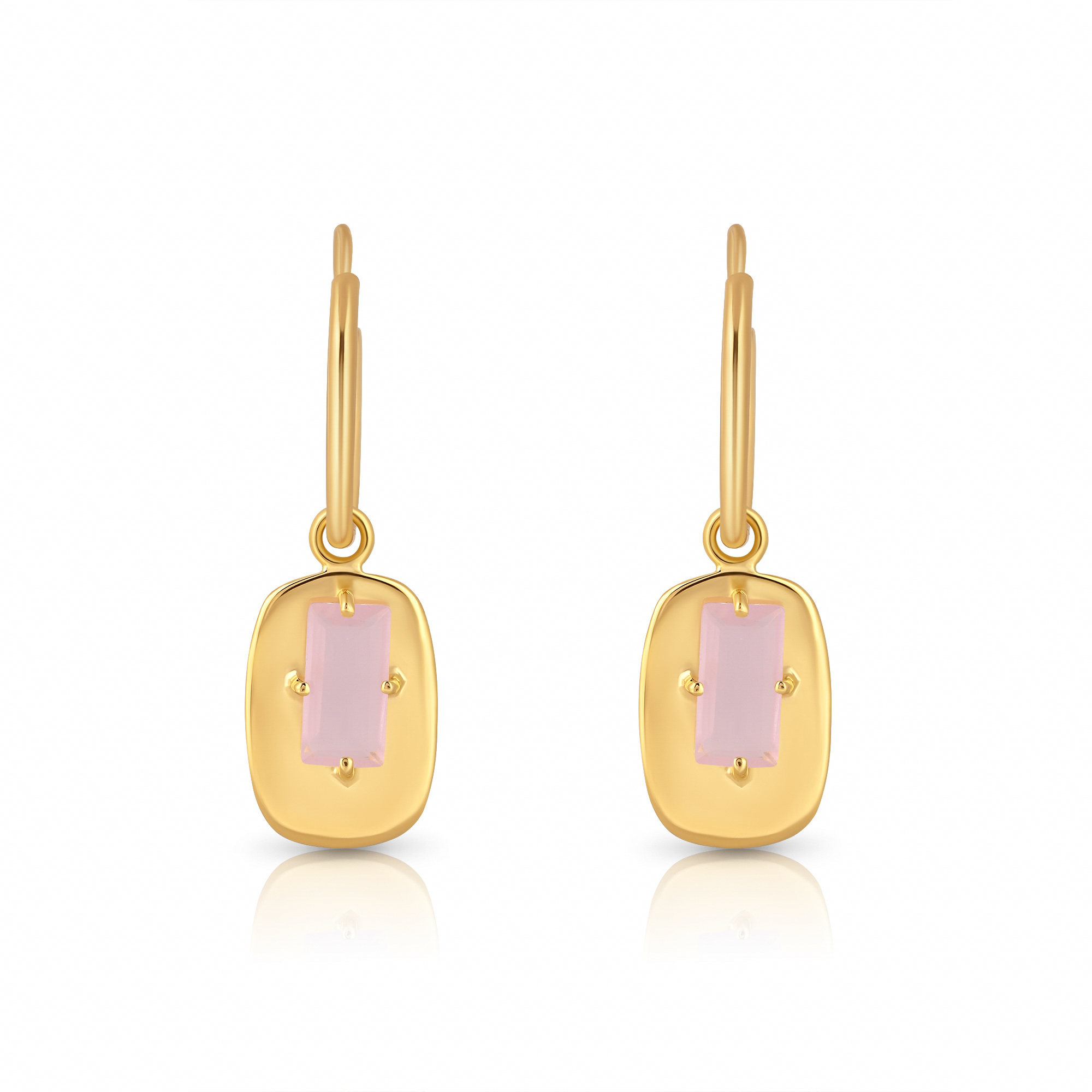 Delicate hoops featuring cascading rose chalcedony stones, beautifully set in 18K gold-plated sterling silver for a graceful and feminine statement piece.