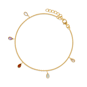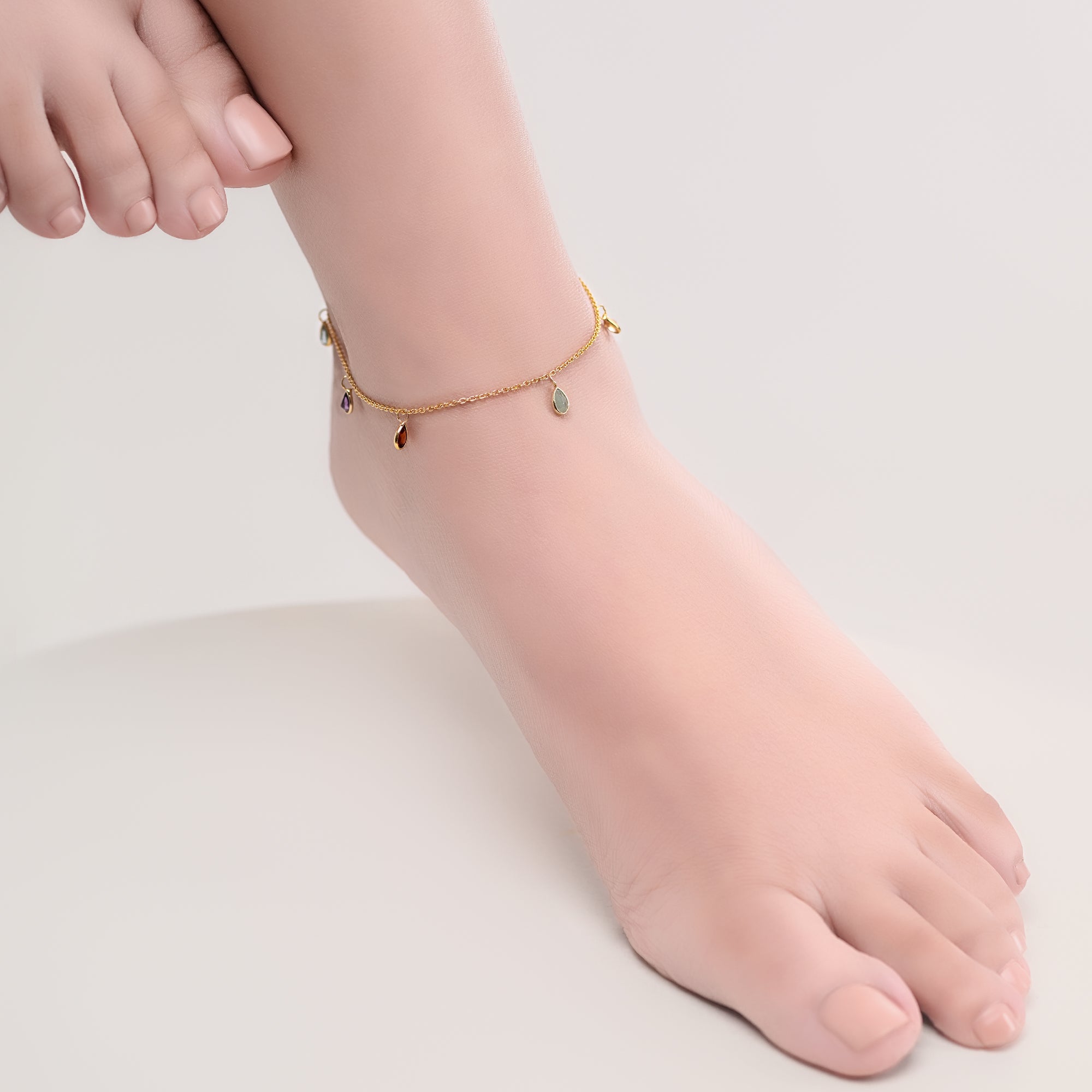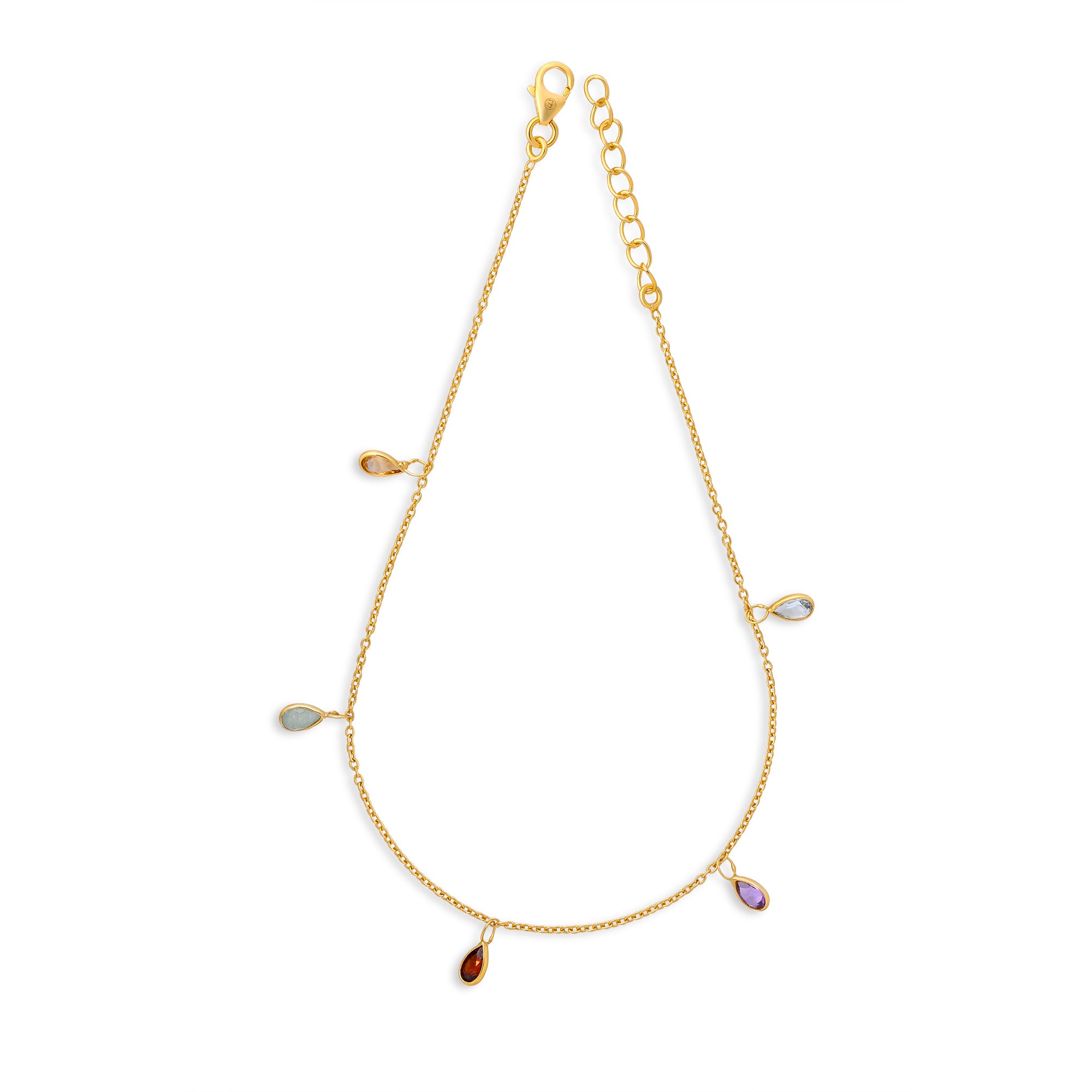 Whimsical and glowing, the Amaris Anklet pairs the magic of multicolour stones with gold warmth — a piece that adds love and brightness to every step
