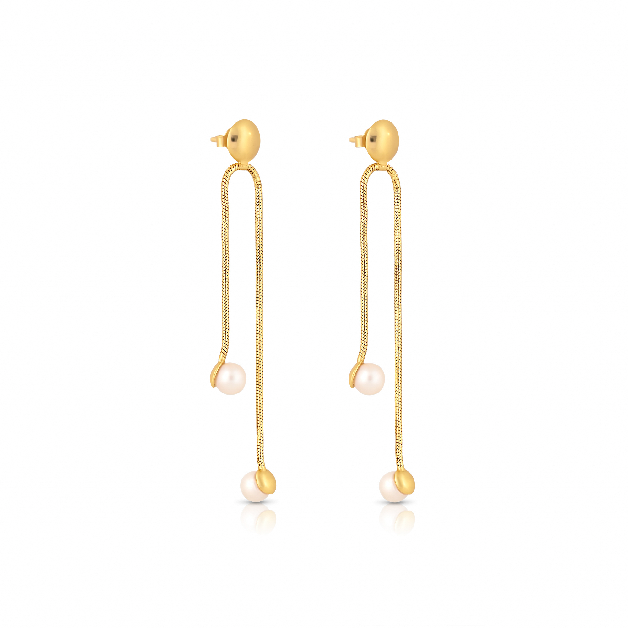 Elegant pearl drop danglers crafted in sterling silver with a luxurious 18k gold plating. A timeless blend of sophistication and charm, perfect for both modern and classic looks.