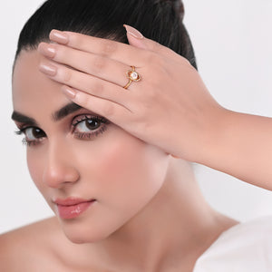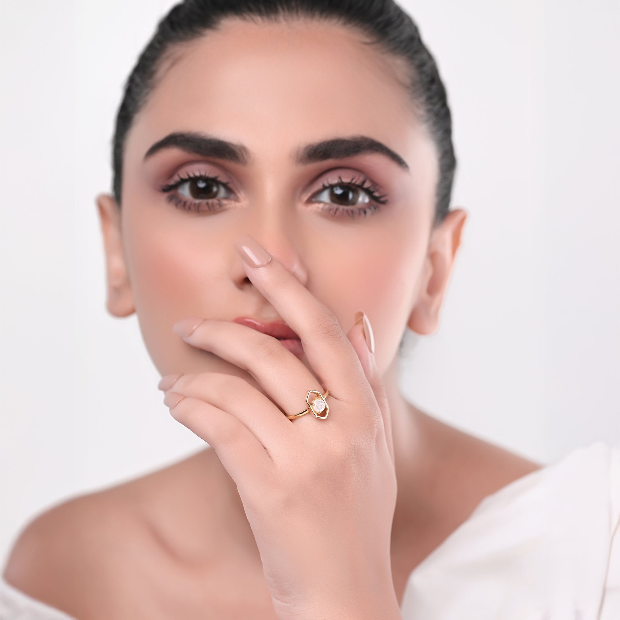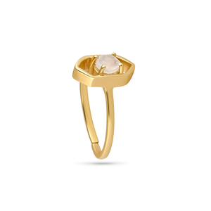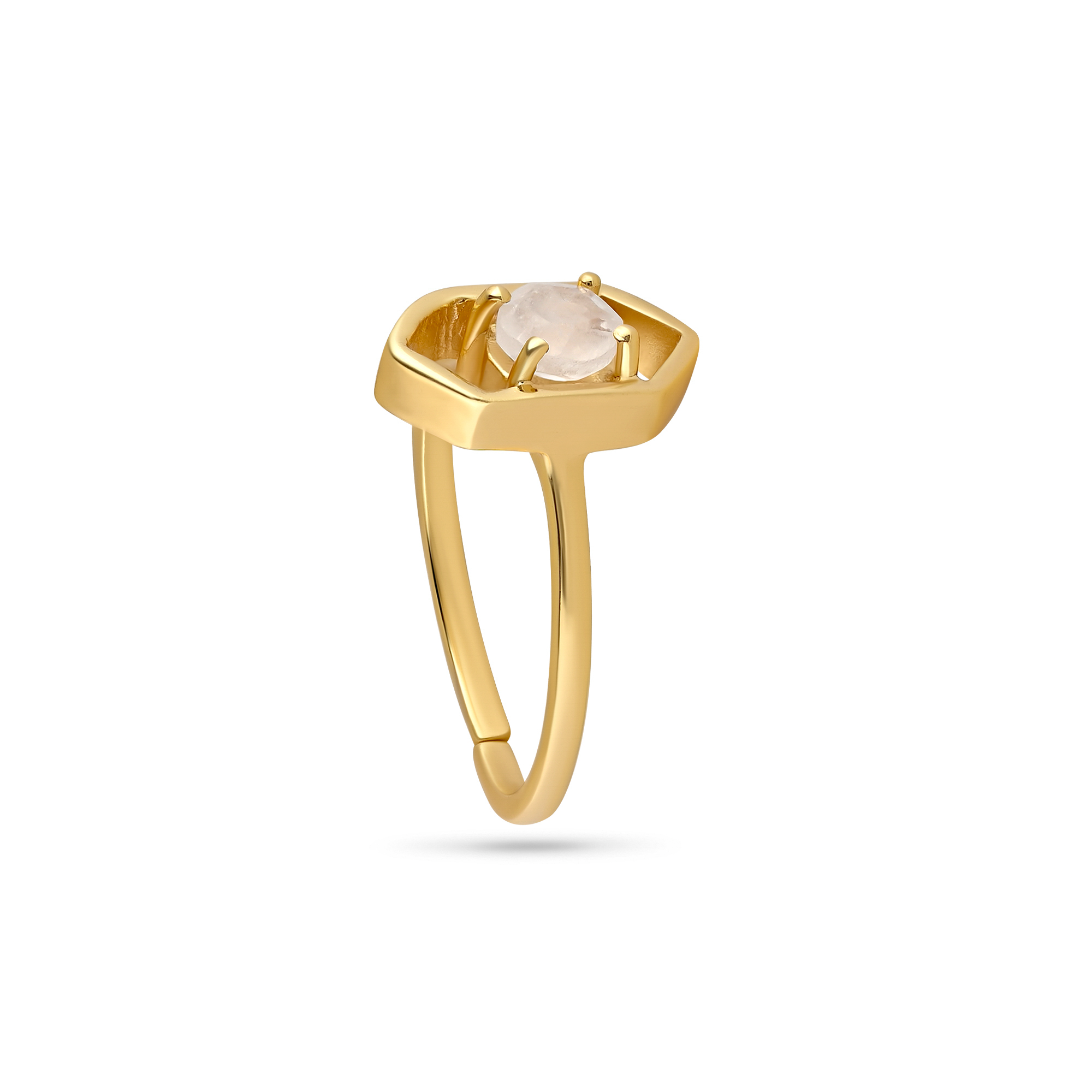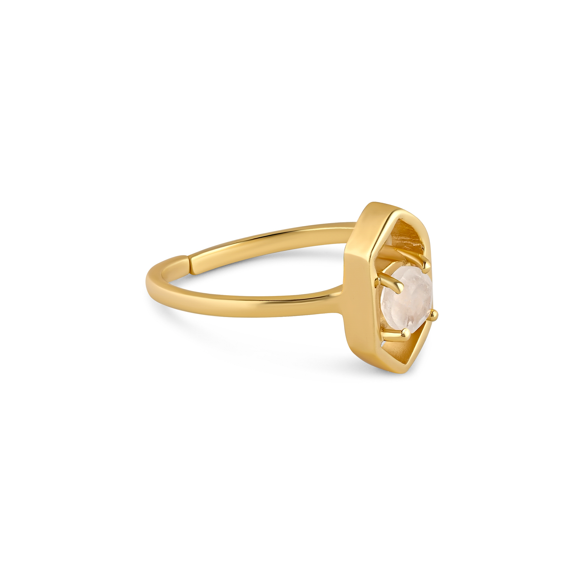 18k gold-plated ring showcasing a mesmerizing rainbow moonstone that captures shifting hues of light