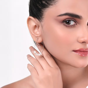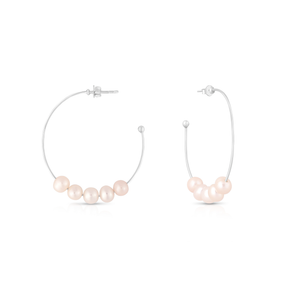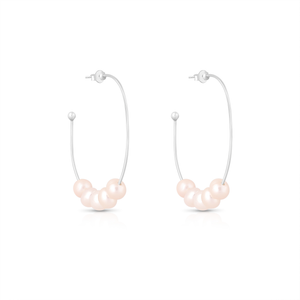 Gracefully timeless, these pearl hoops are crafted in sterling silver and adorned with lustrous pearls that add a touch of elegance to their modern silhouette