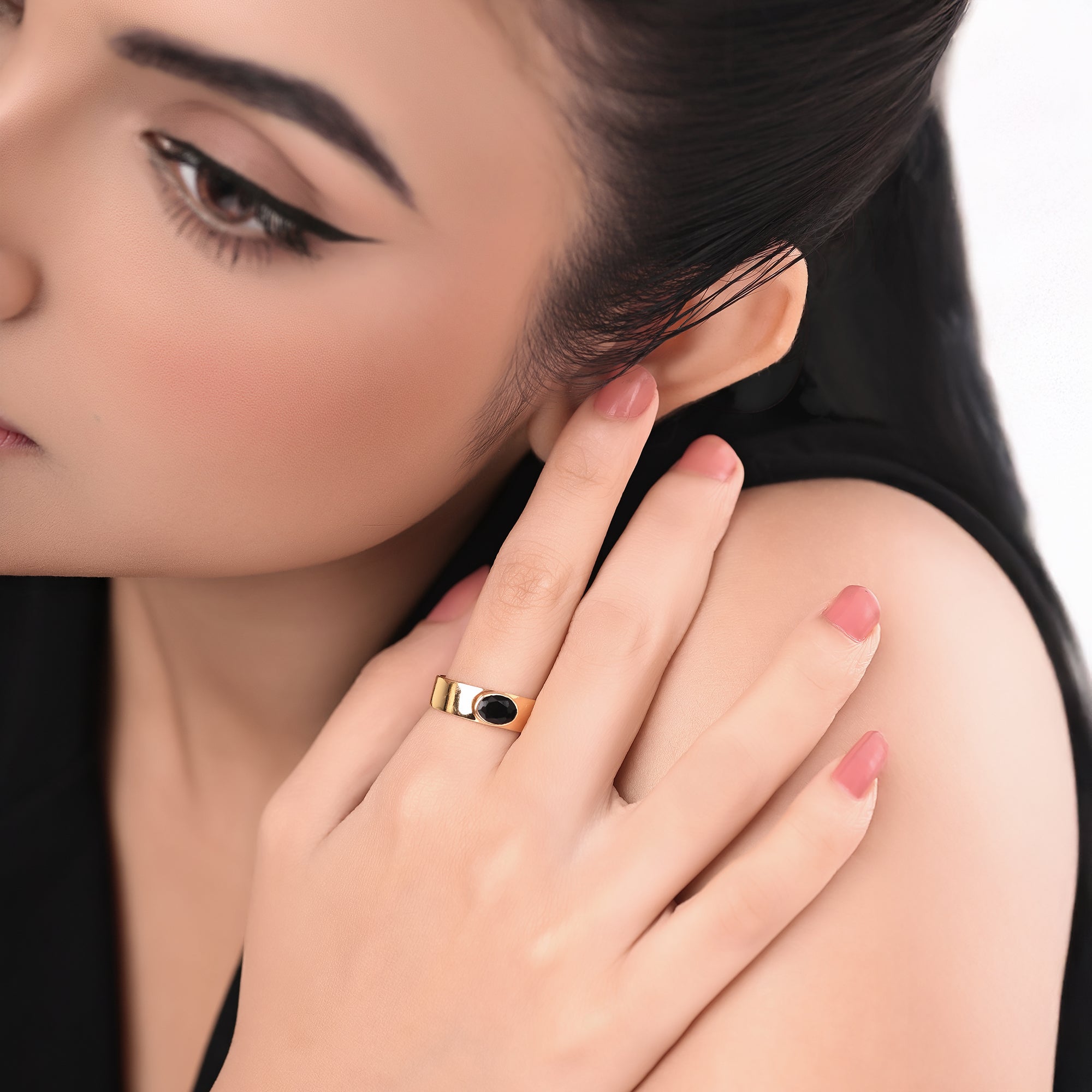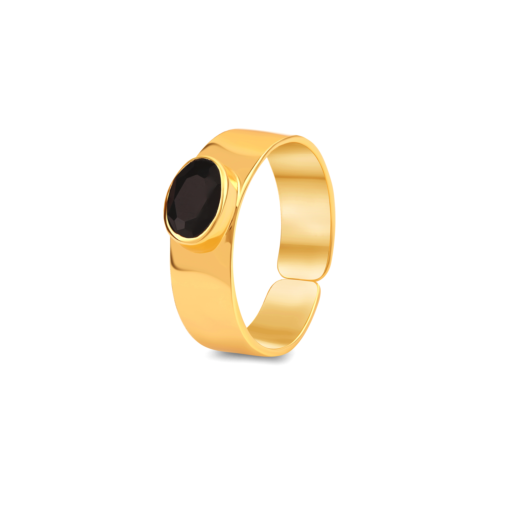 Make a powerful statement with this black onyx ring set in gold-plated sterling silver. Bold, modern, and unapologetically sleek — a true symbol of strength and style.
