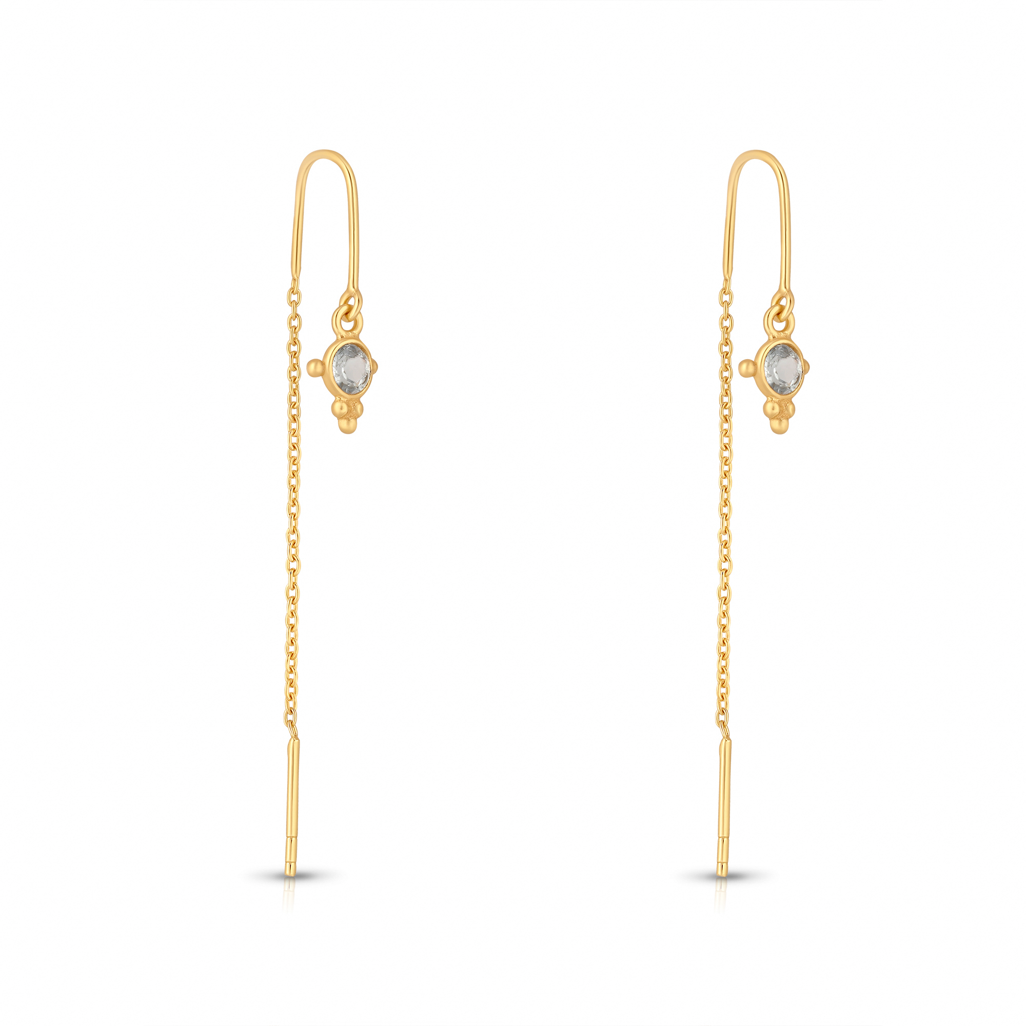 Sleek threaded earrings featuring radiant blue topaz set in 18K gold-plated sterling silver. A perfect blend of elegance and subtle sparkle for any occasion.