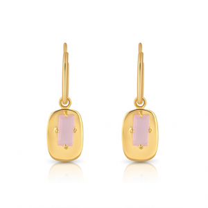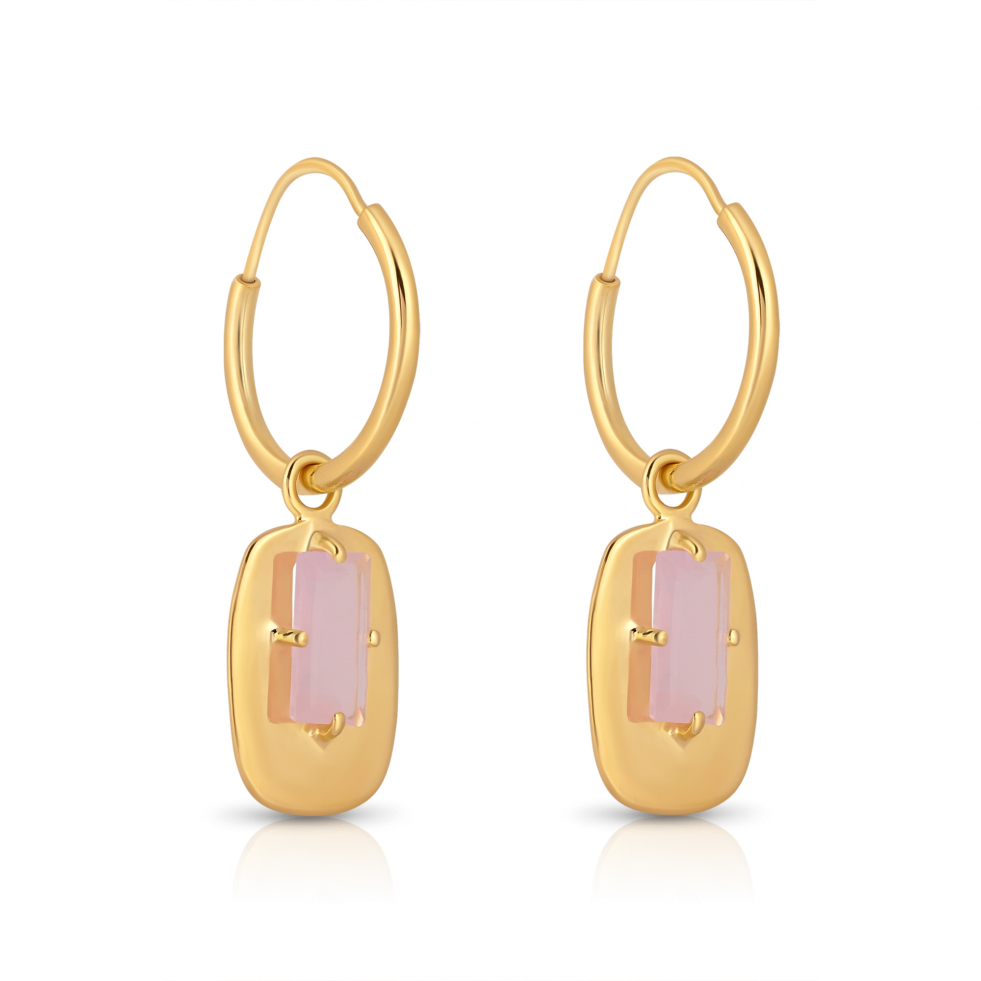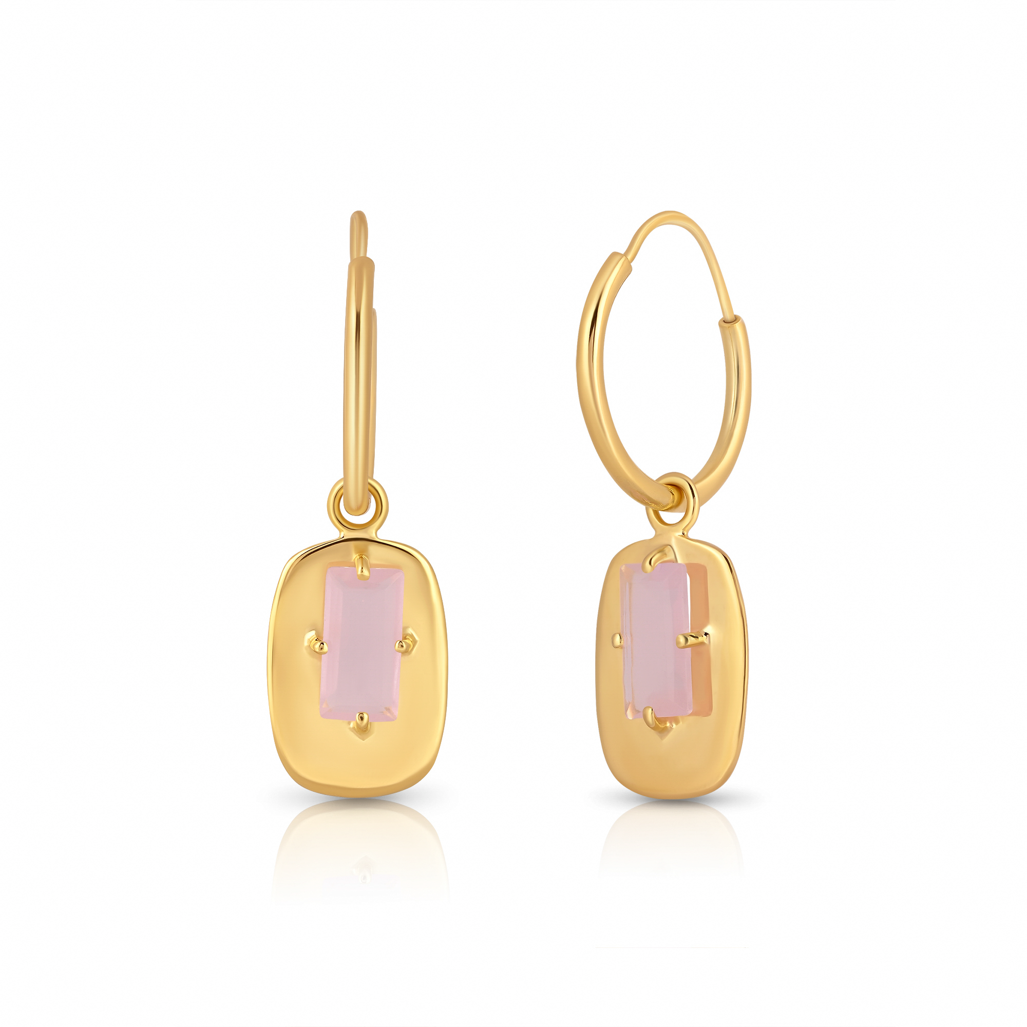 Delicate hoops featuring cascading rose chalcedony stones, beautifully set in 18K gold-plated sterling silver for a graceful and feminine statement piece.