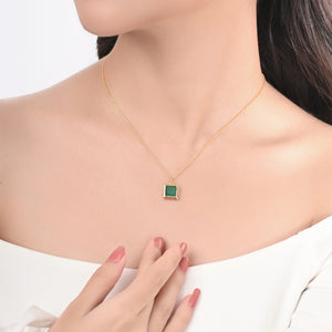 Timeless and elegant, this pendant features a square-cut green onyx set in a sleek bezel of 925 sterling silver with gold plating